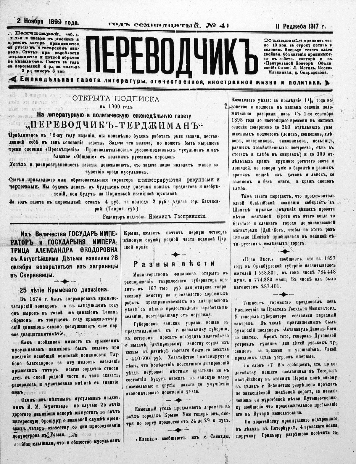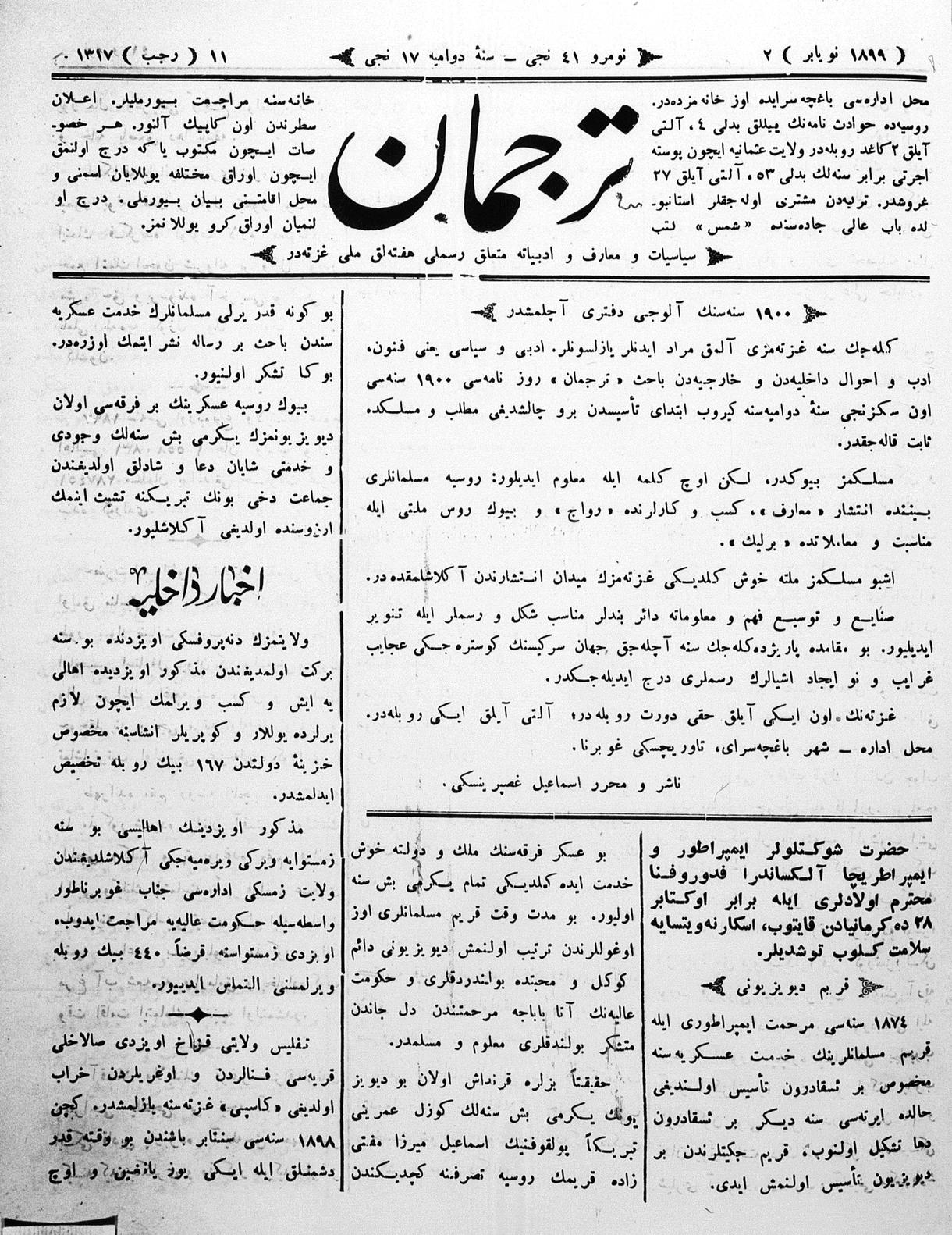 Turkish-Russian newspaper published in Crimea by İsmail Gaspıralı.