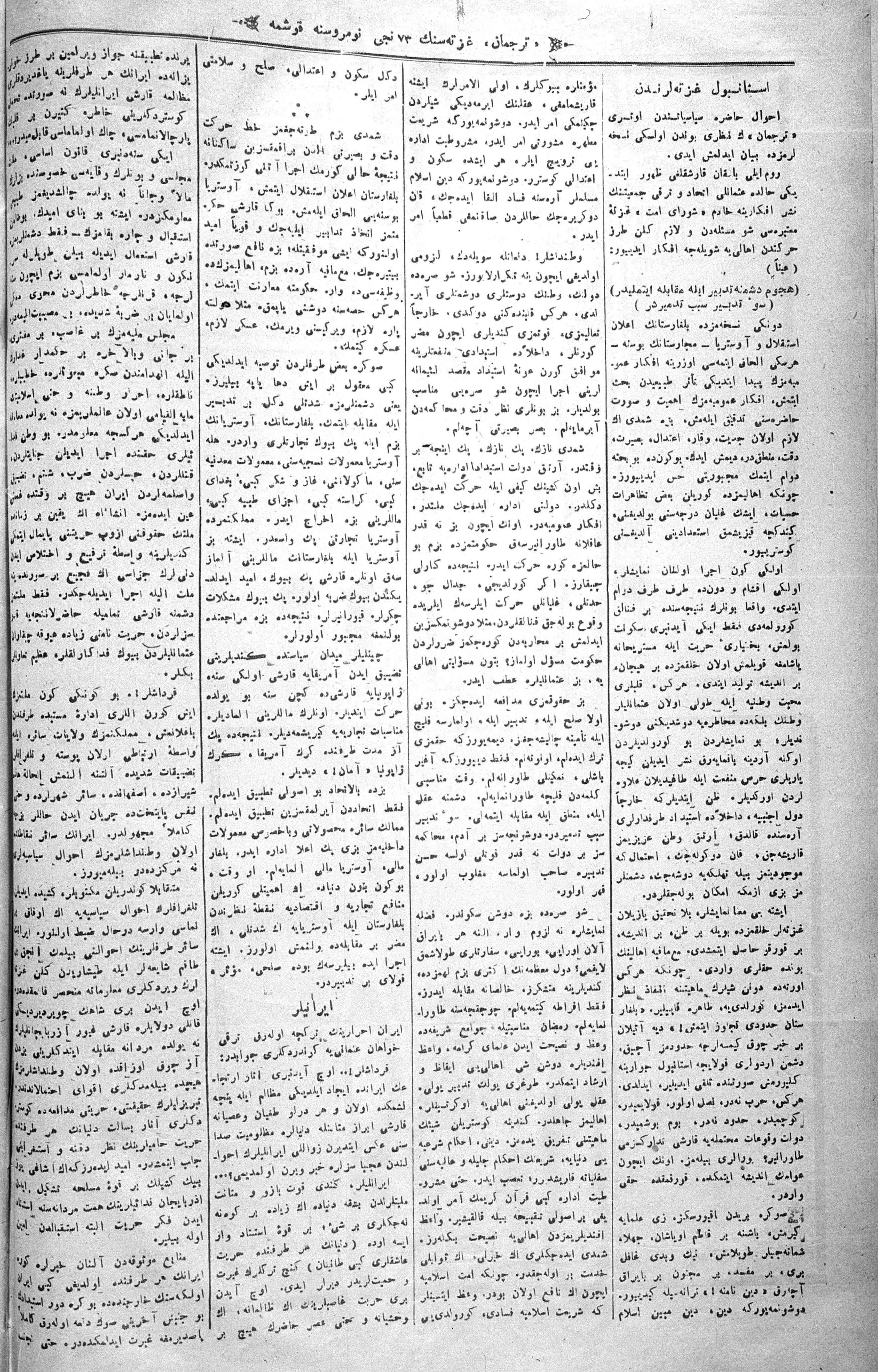 The name of the newspaper changed to Tercüman-ı Ahval-i Zaman in 1905. In 1909, it started to be published under its first name, Tercüman.