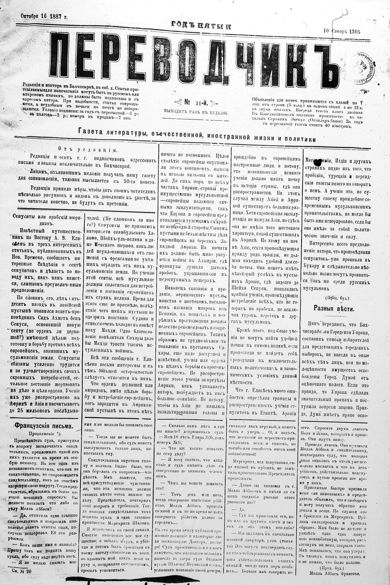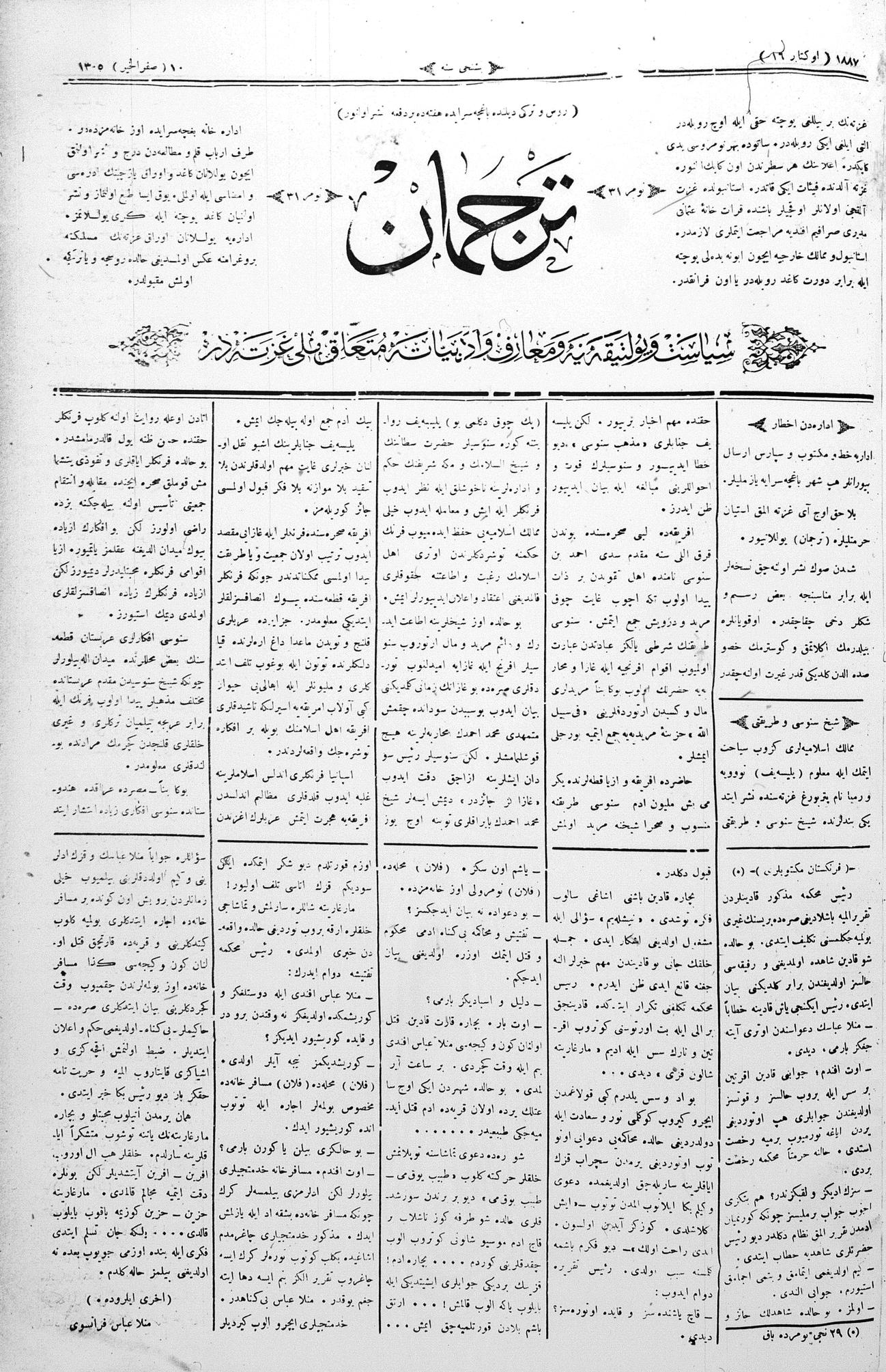 Tercüman, 16 October 1887 Year 5 No 31