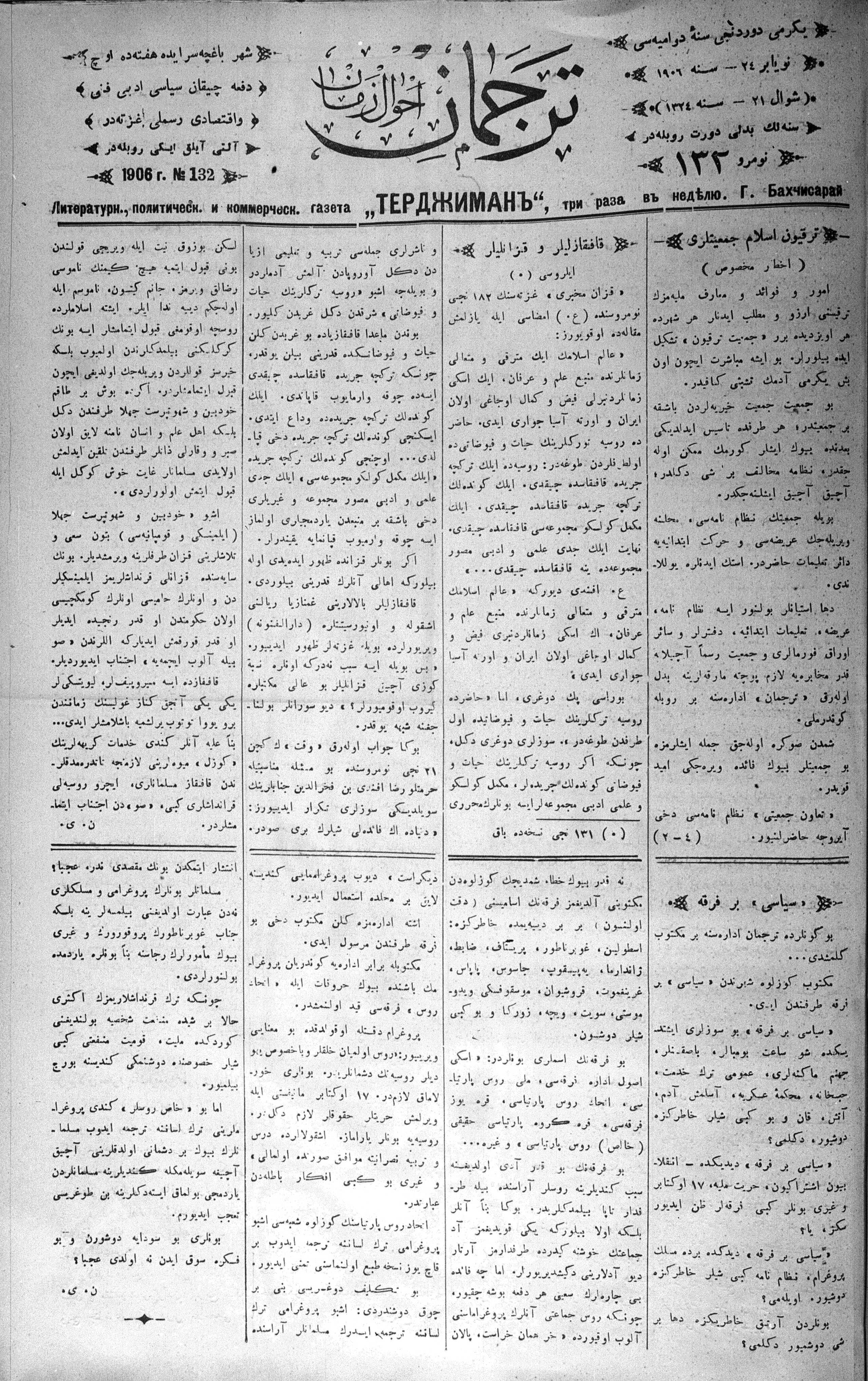 Tercüman, 24 November 1906 Year 24 No 132
