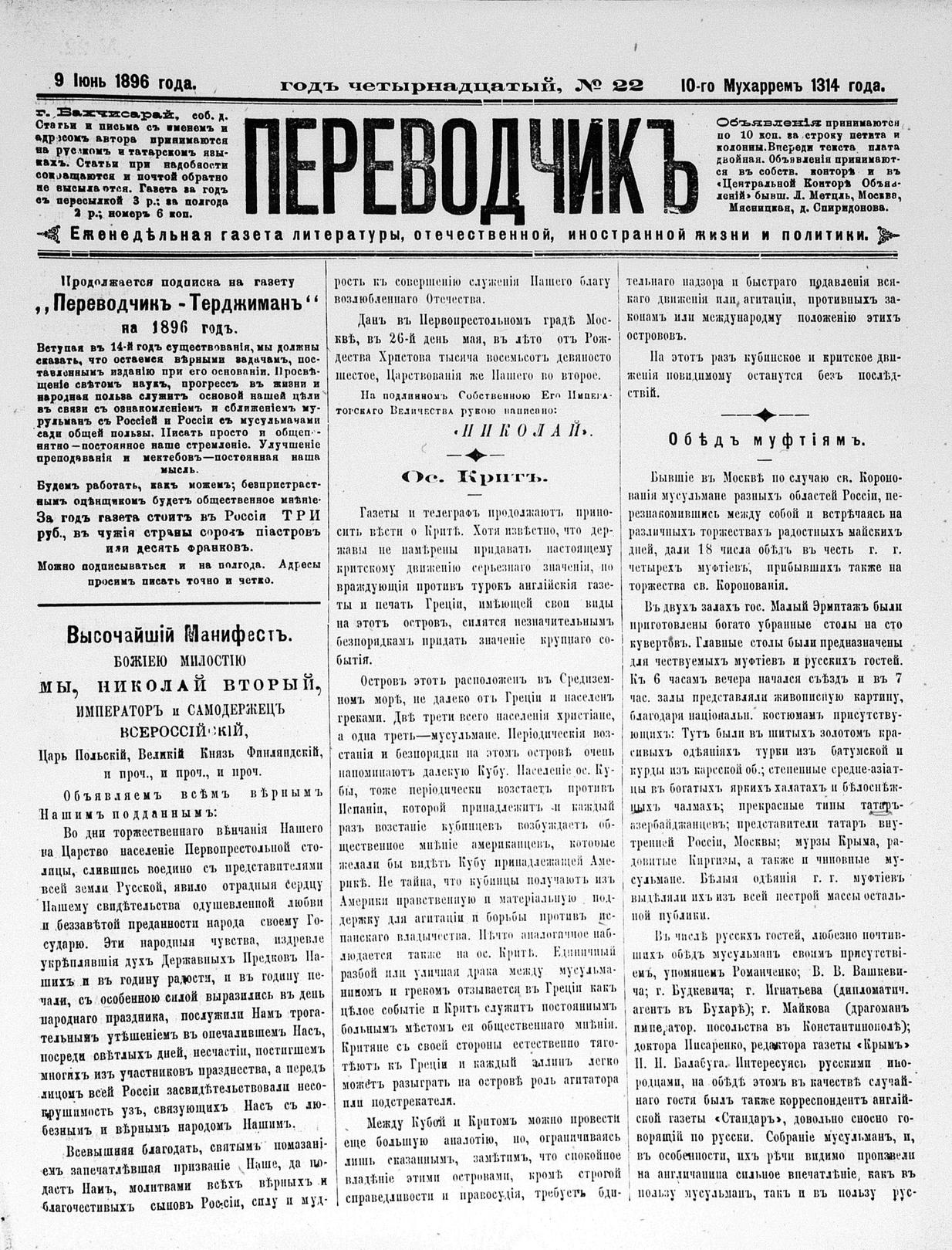 Turkish-Russian newspaper published in Crimea by İsmail Gaspıralı.