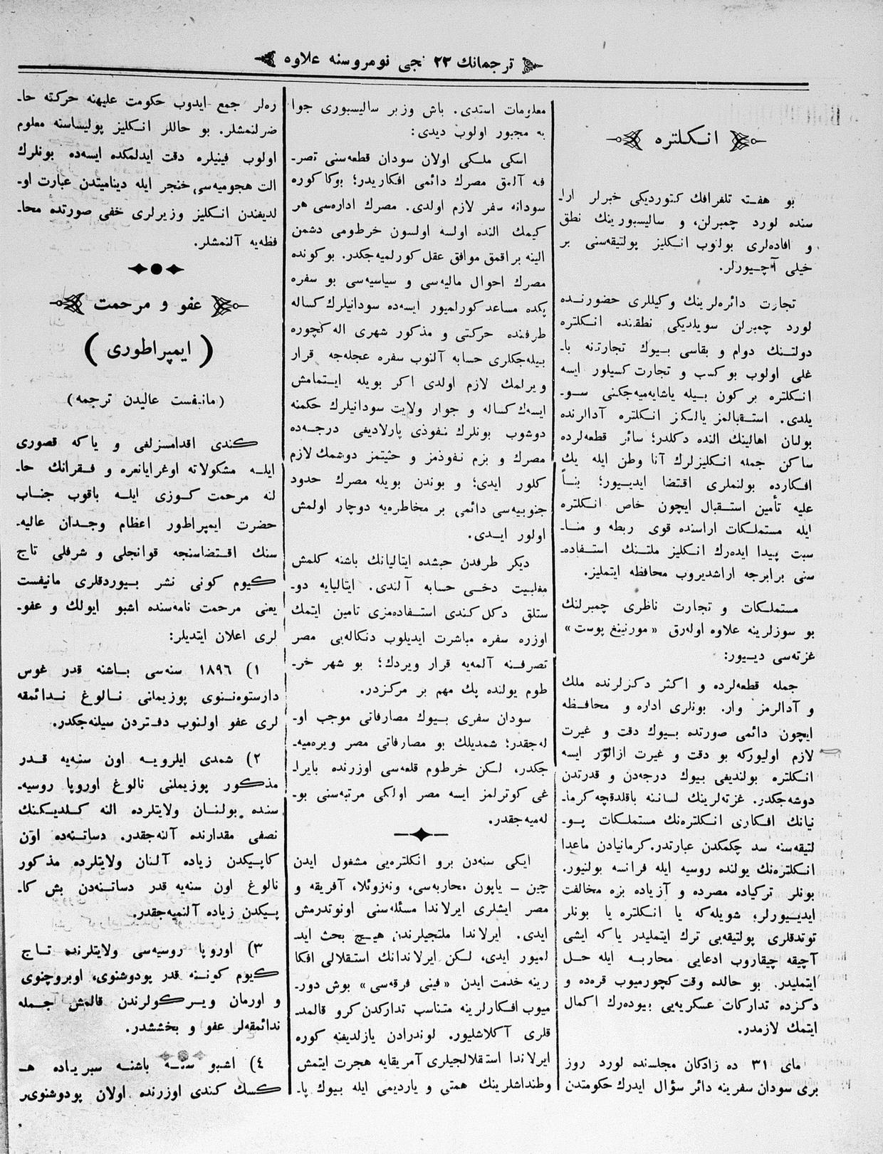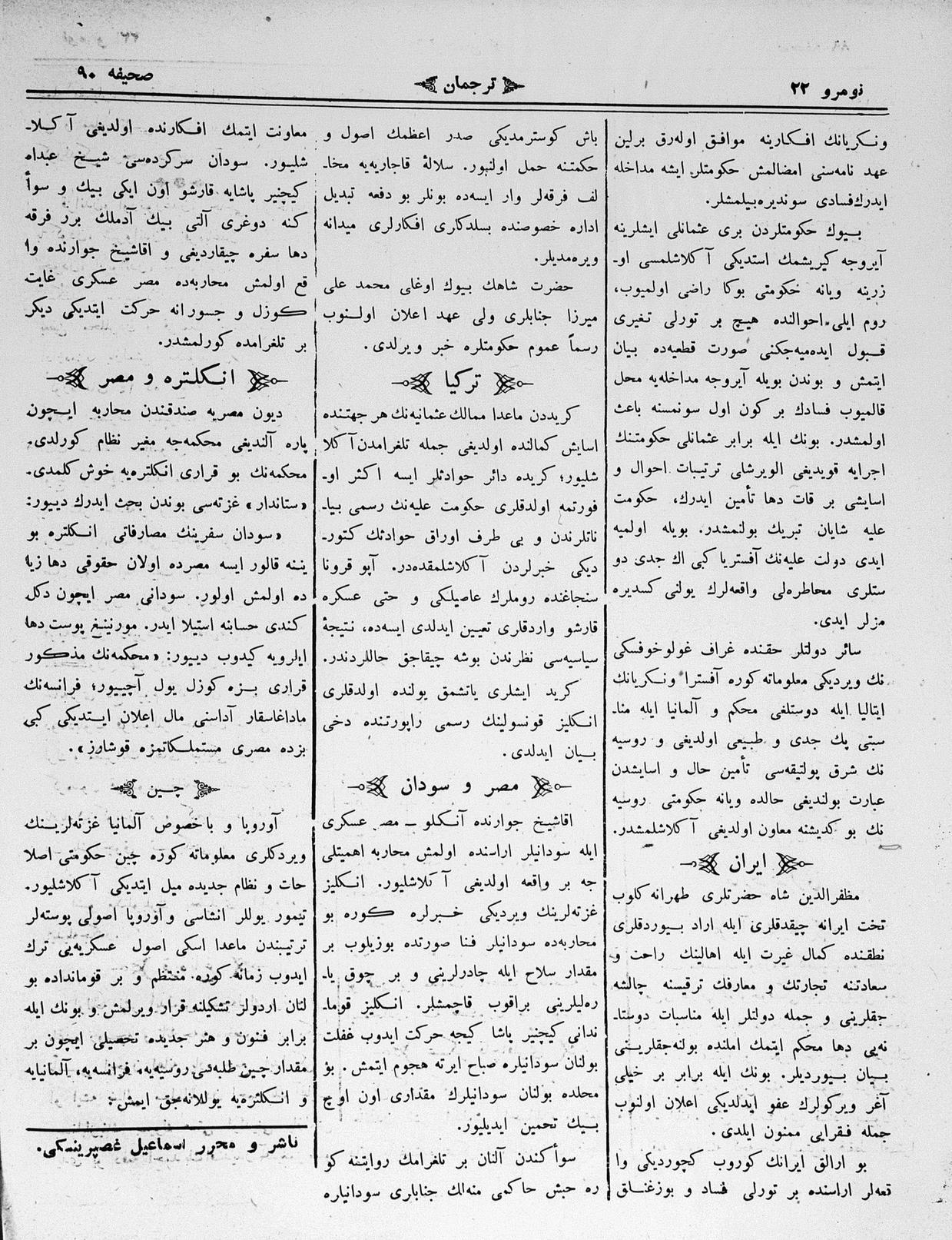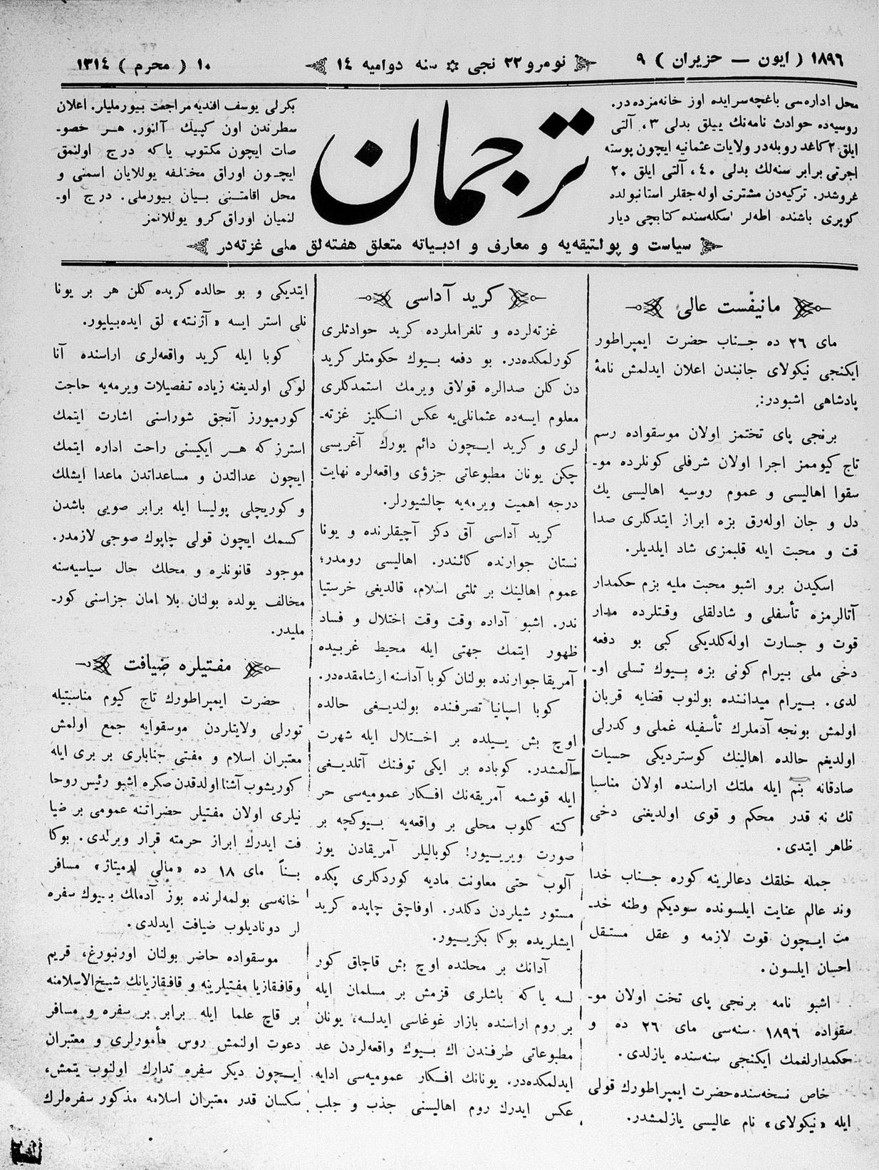 The name of the newspaper changed to Tercüman-ı Ahval-i Zaman in 1905. In 1909, it started to be published under its first name, Tercüman.