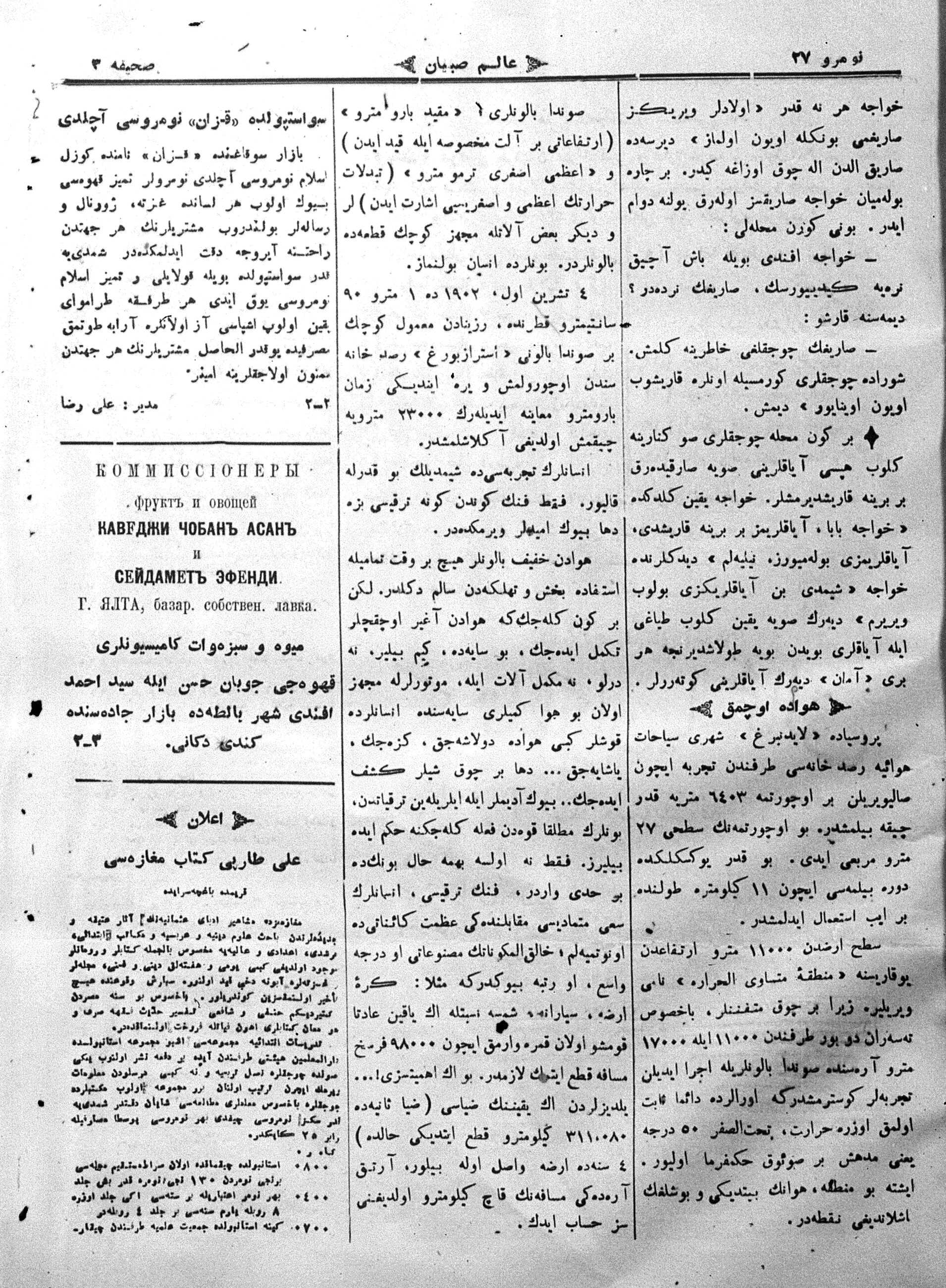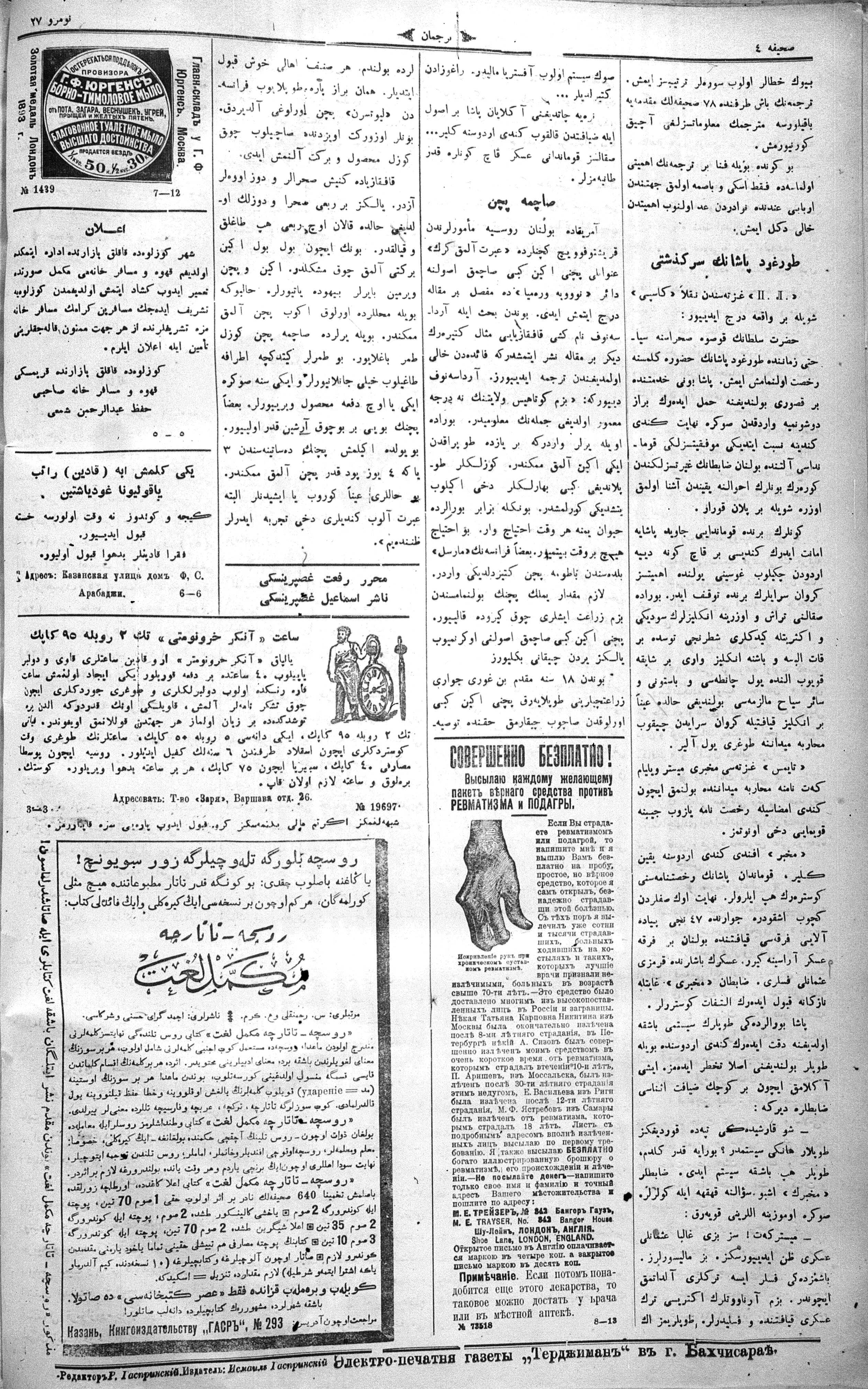 Turkish-Russian newspaper published in Crimea by İsmail Gaspıralı.