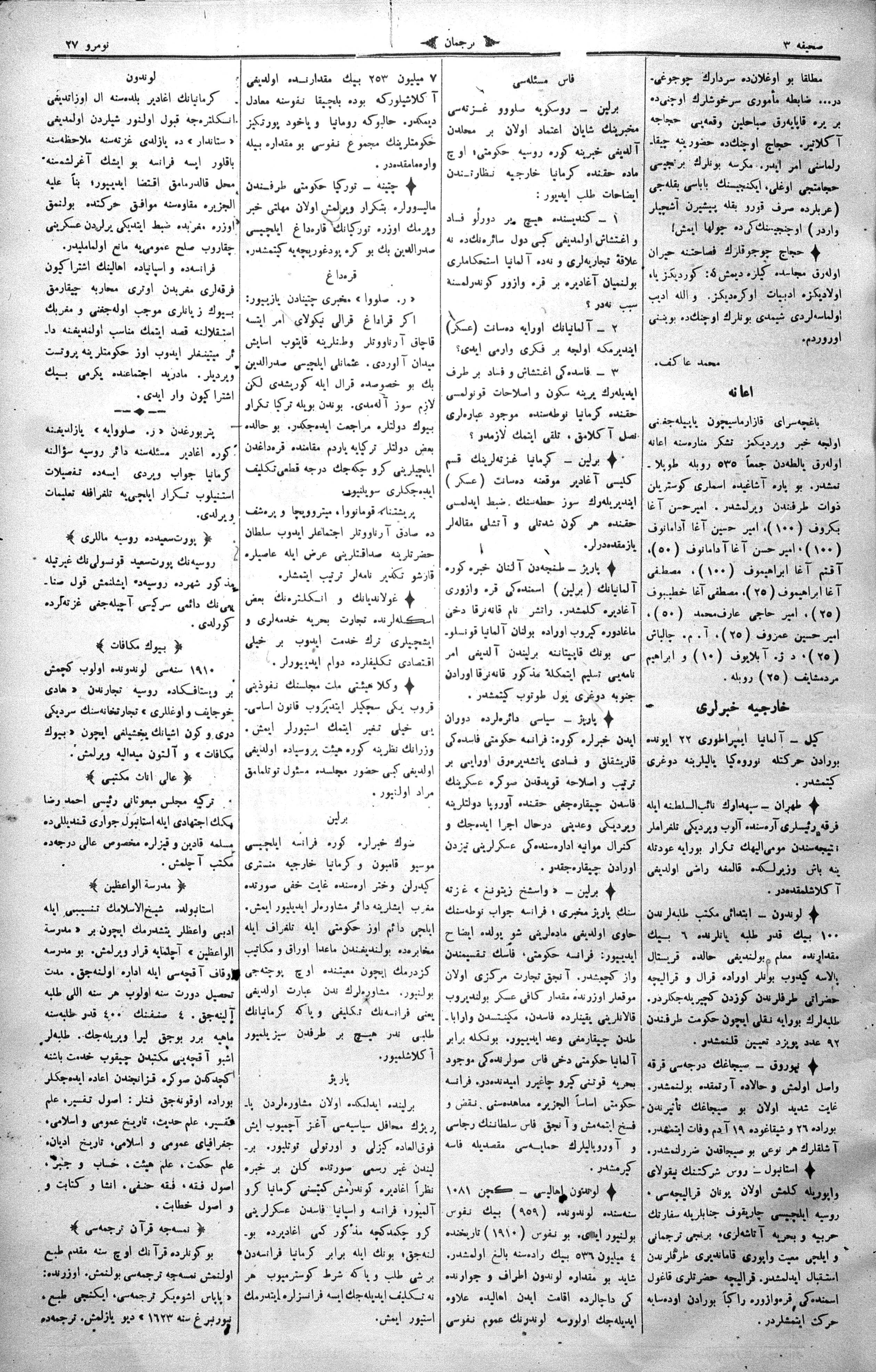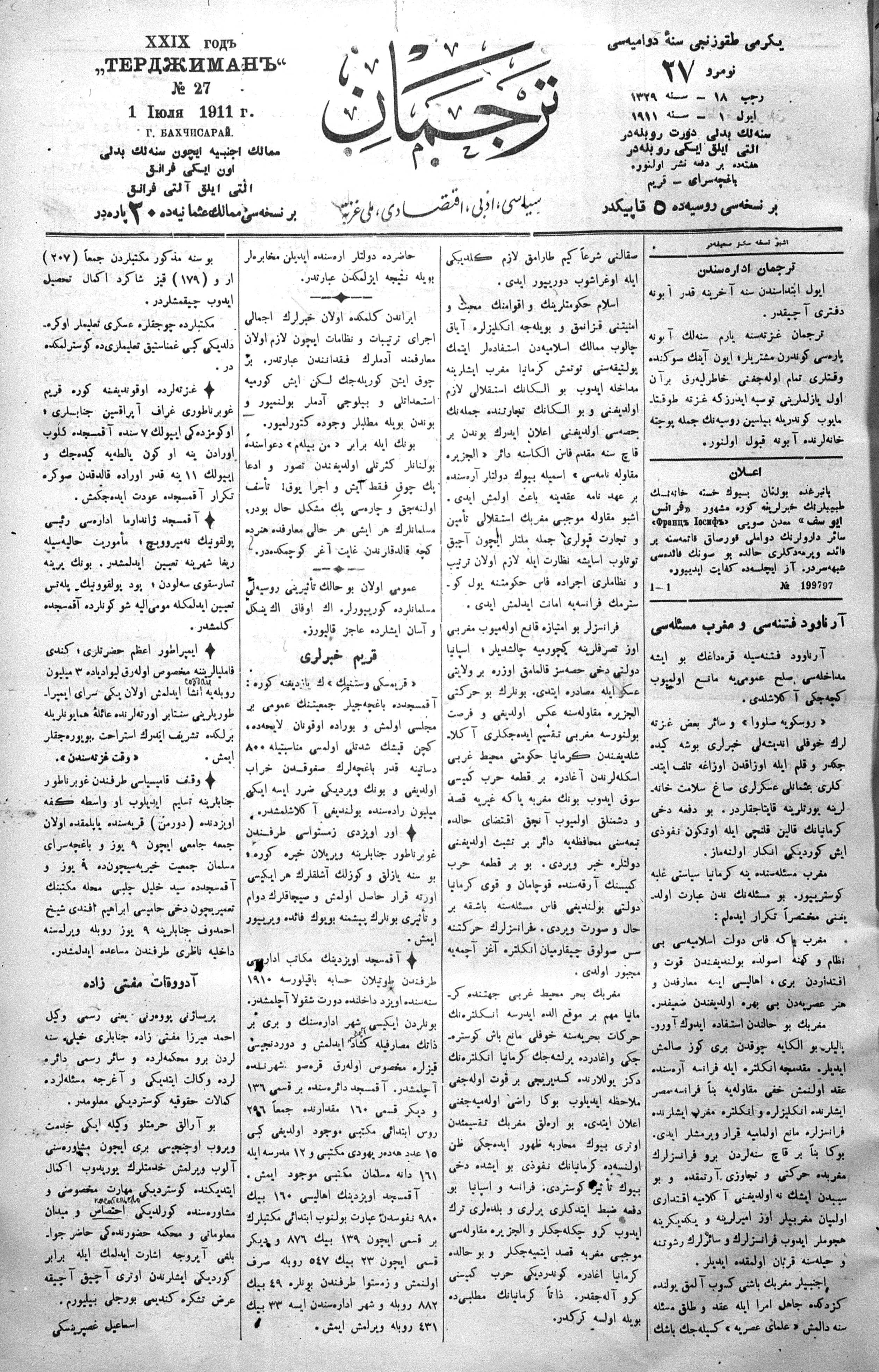 Tercüman, 01 July 1911 Year 29 No 27