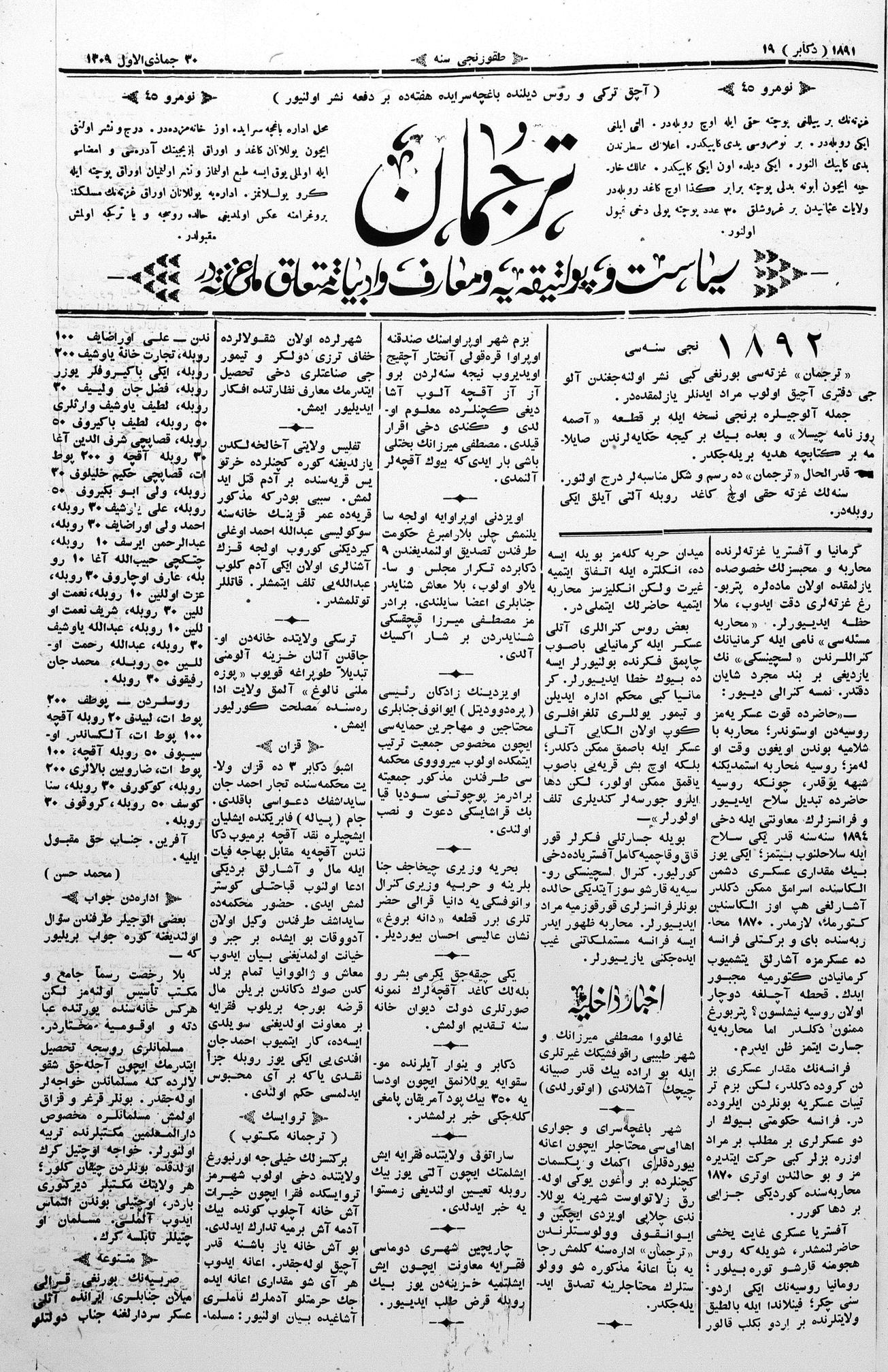 The name of the newspaper changed to Tercüman-ı Ahval-i Zaman in 1905. In 1909, it started to be published under its first name, Tercüman.