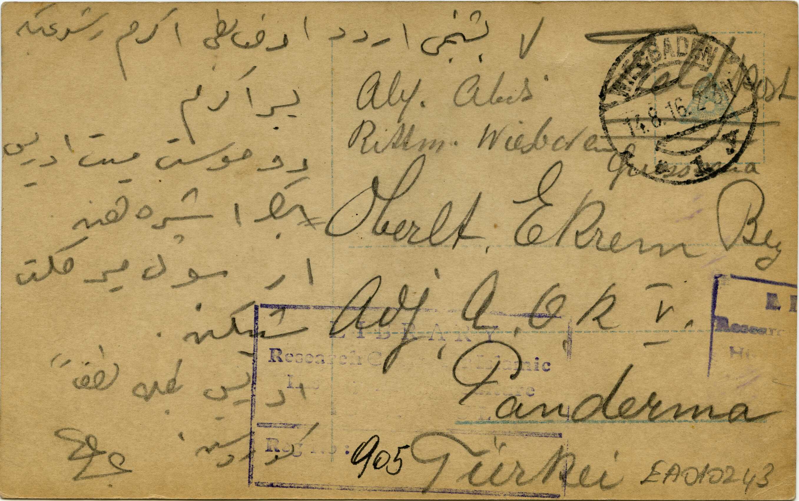 Text on the back of the photo: Beşinci Ordu emir zabiti Ekrem Rüşdü Bey'e gönderilmiştir.