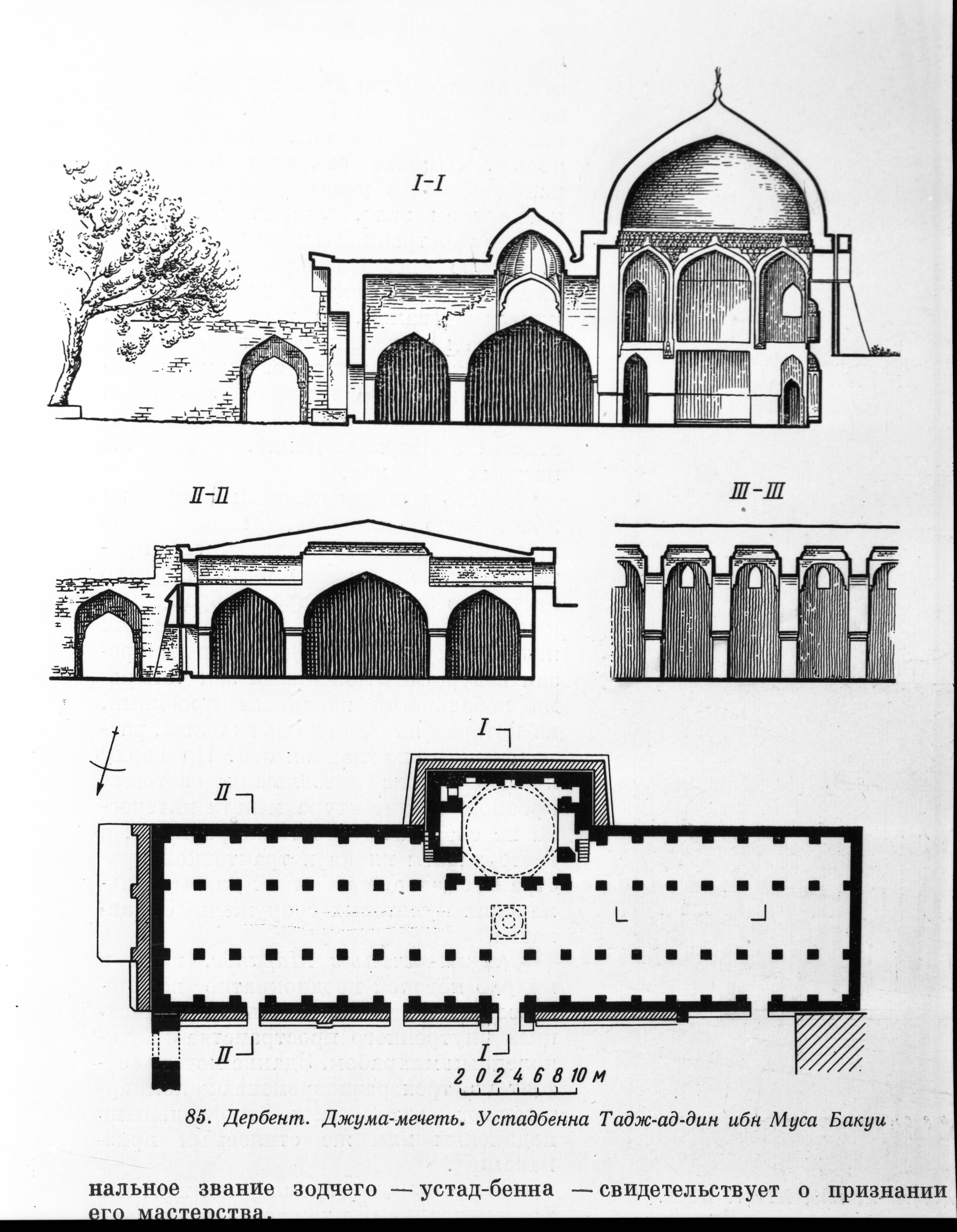 Bakü'de Cuma Camii çizimi ve kesitleri