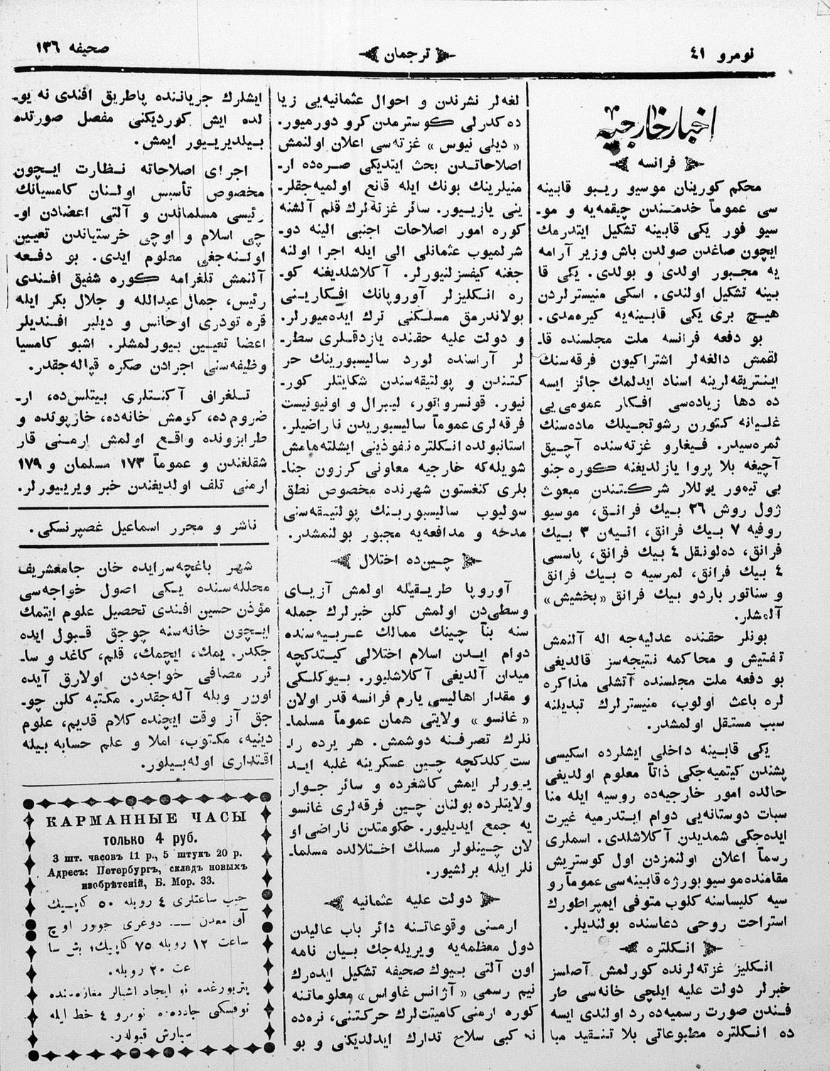 The name of the newspaper changed to Tercüman-ı Ahval-i Zaman in 1905. In 1909, it started to be published under its first name, Tercüman.