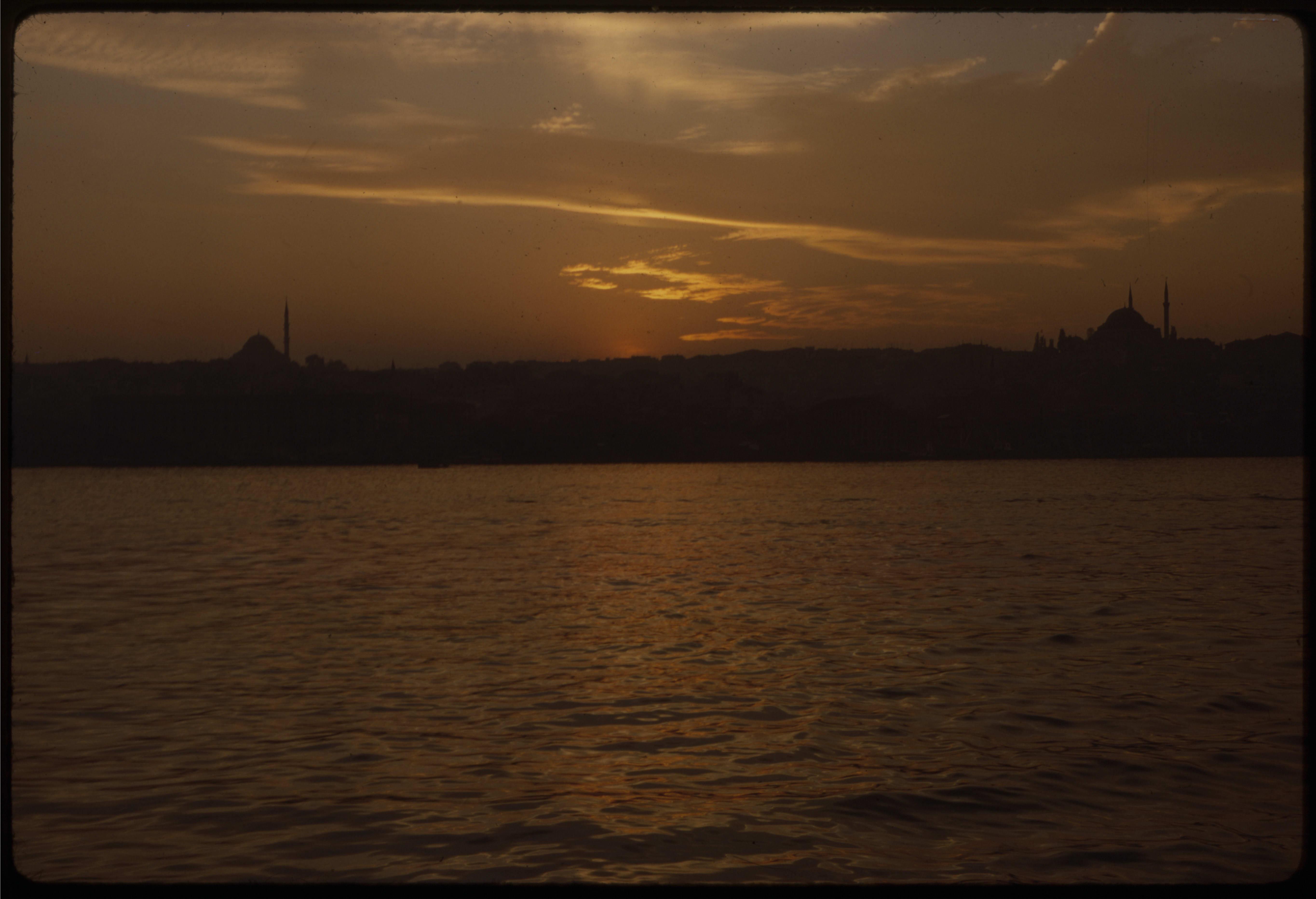 İstanbul-Güneş batarken Haliç ile Yavuz Sultan Selim ve Mihrimah Camiilerinin görünüşü