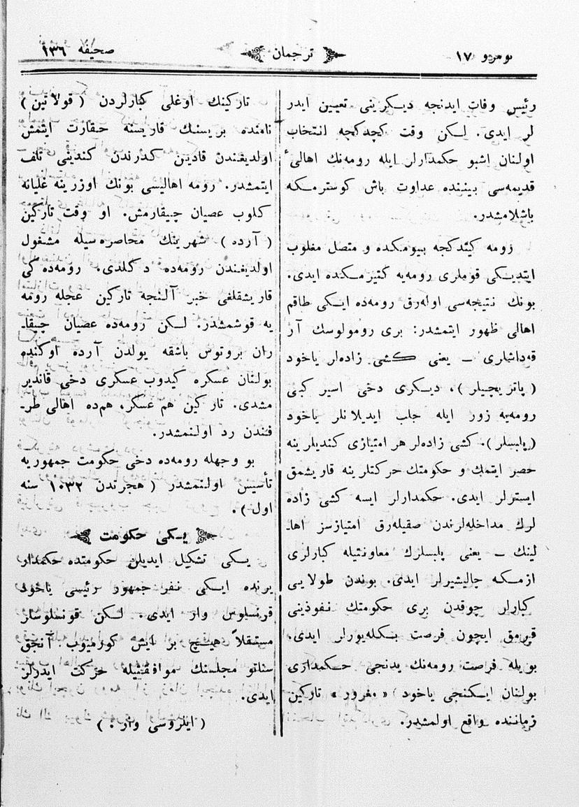 The name of the newspaper changed to Tercüman-ı Ahval-i Zaman in 1905. In 1909, it started to be published under its first name, Tercüman.