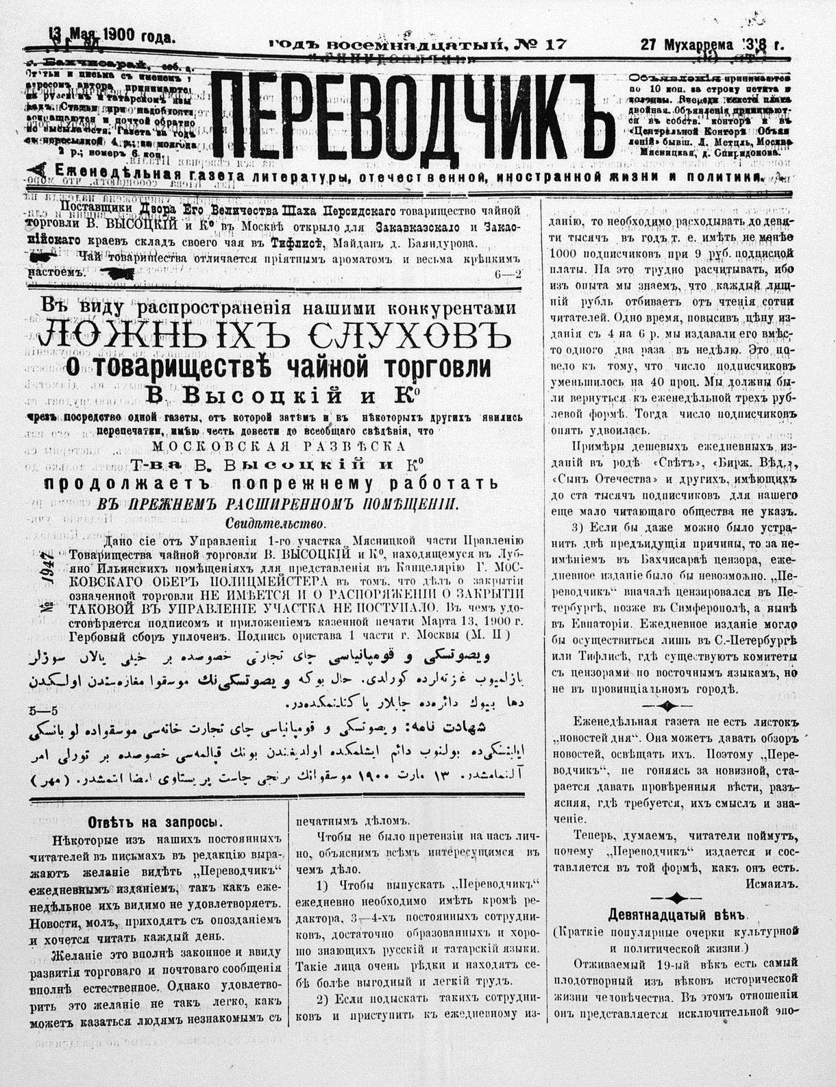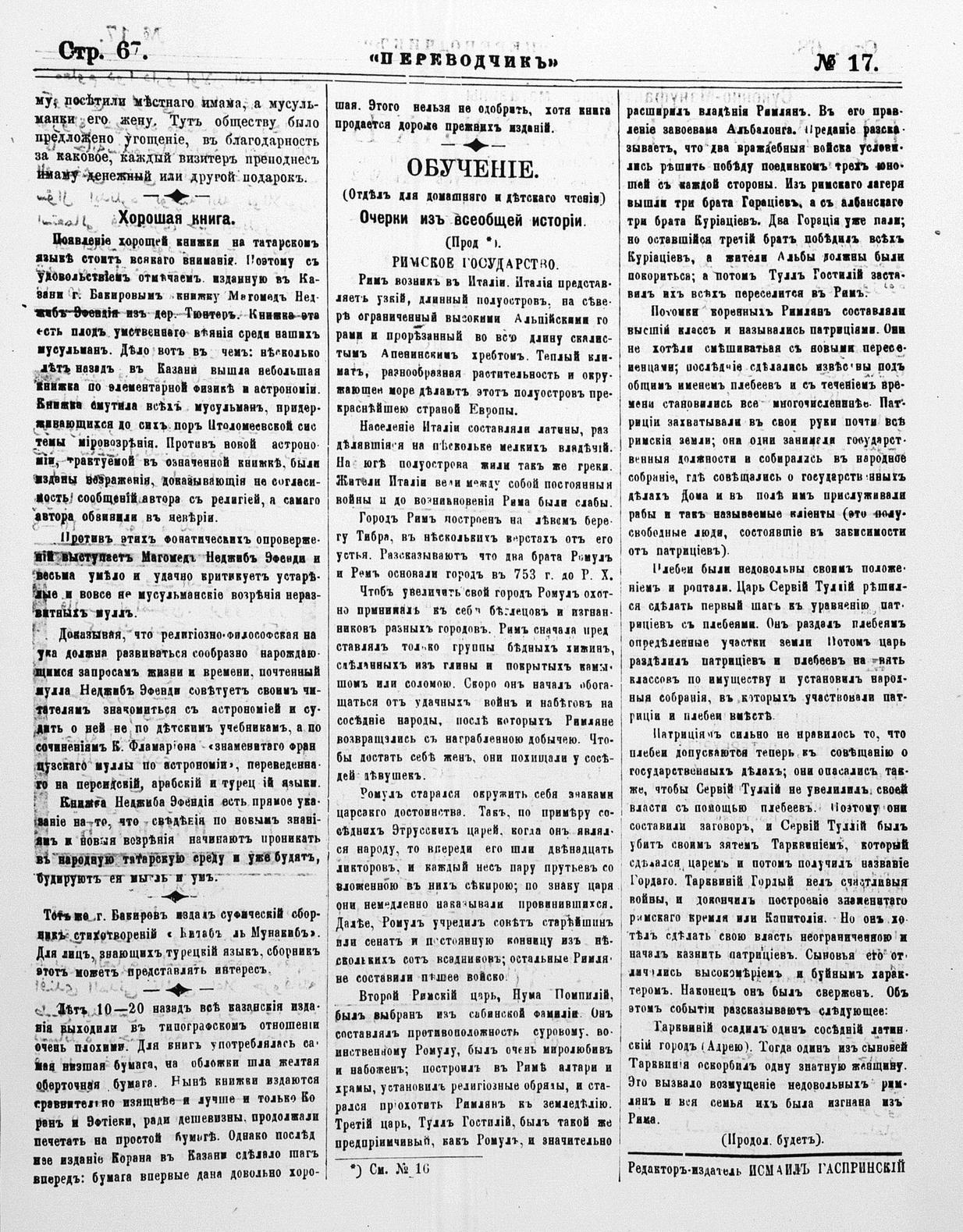 Turkish-Russian newspaper published in Crimea by İsmail Gaspıralı.