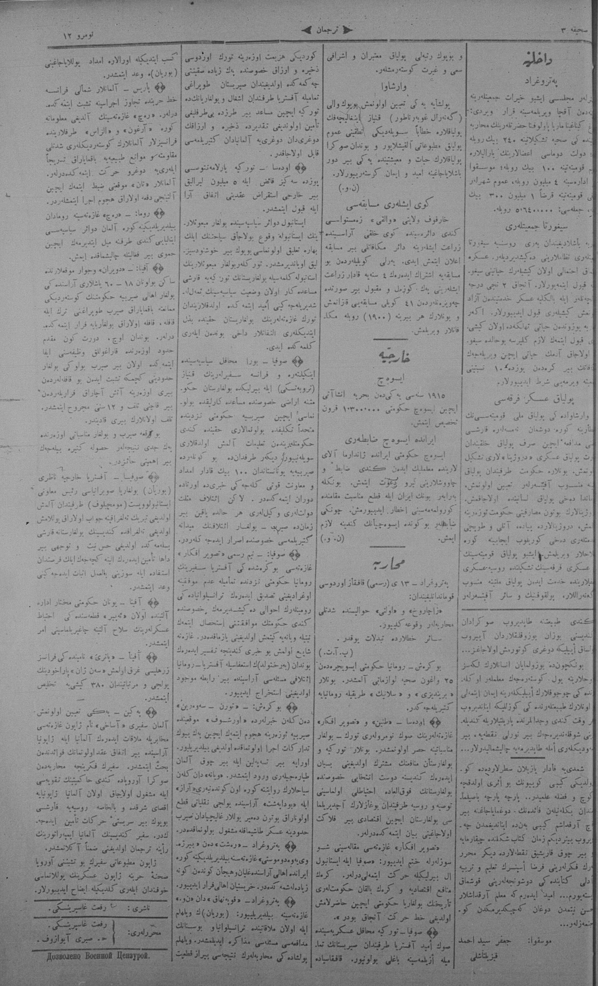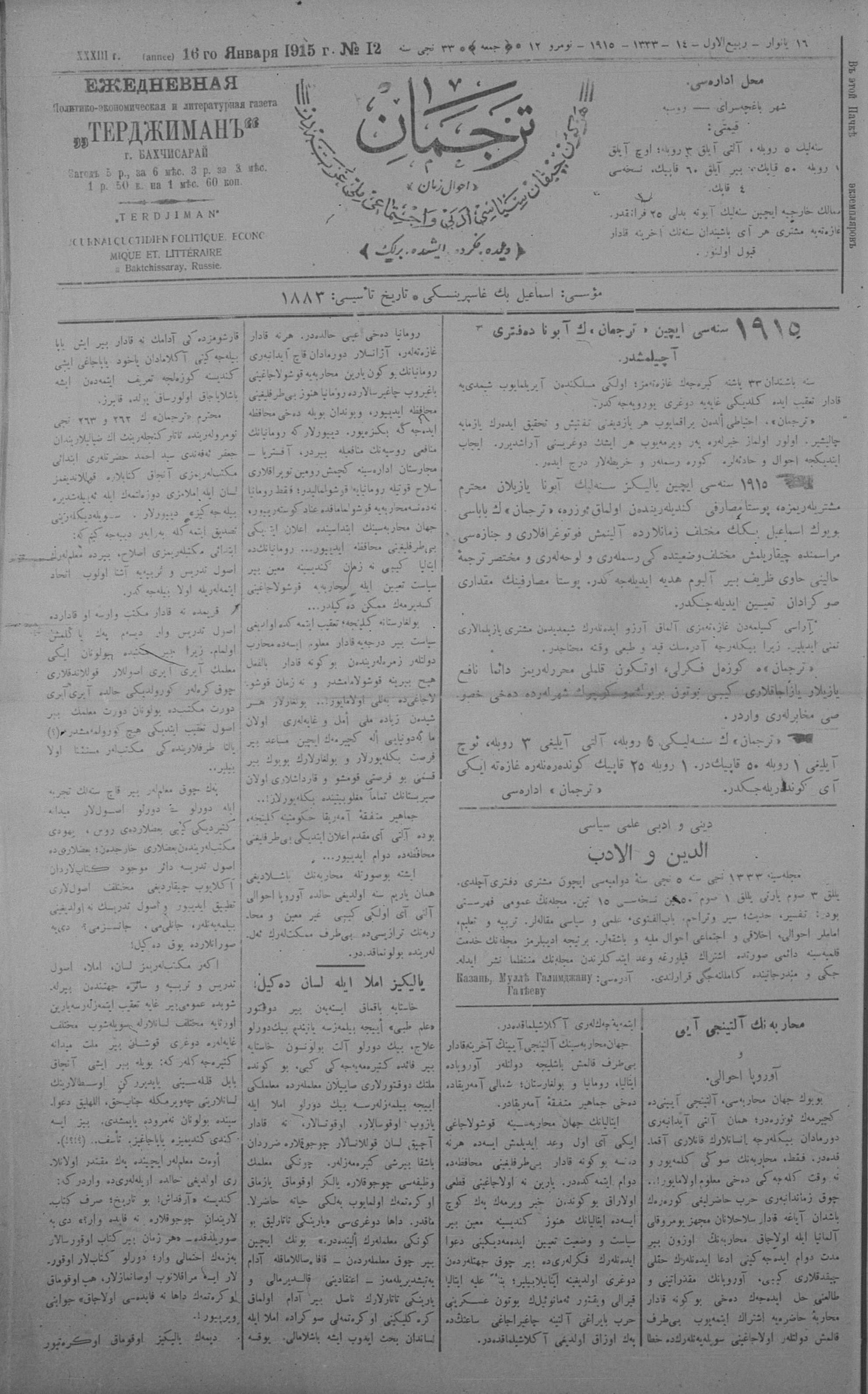 Tercüman, 16 January 1915 Year 33 No 12
