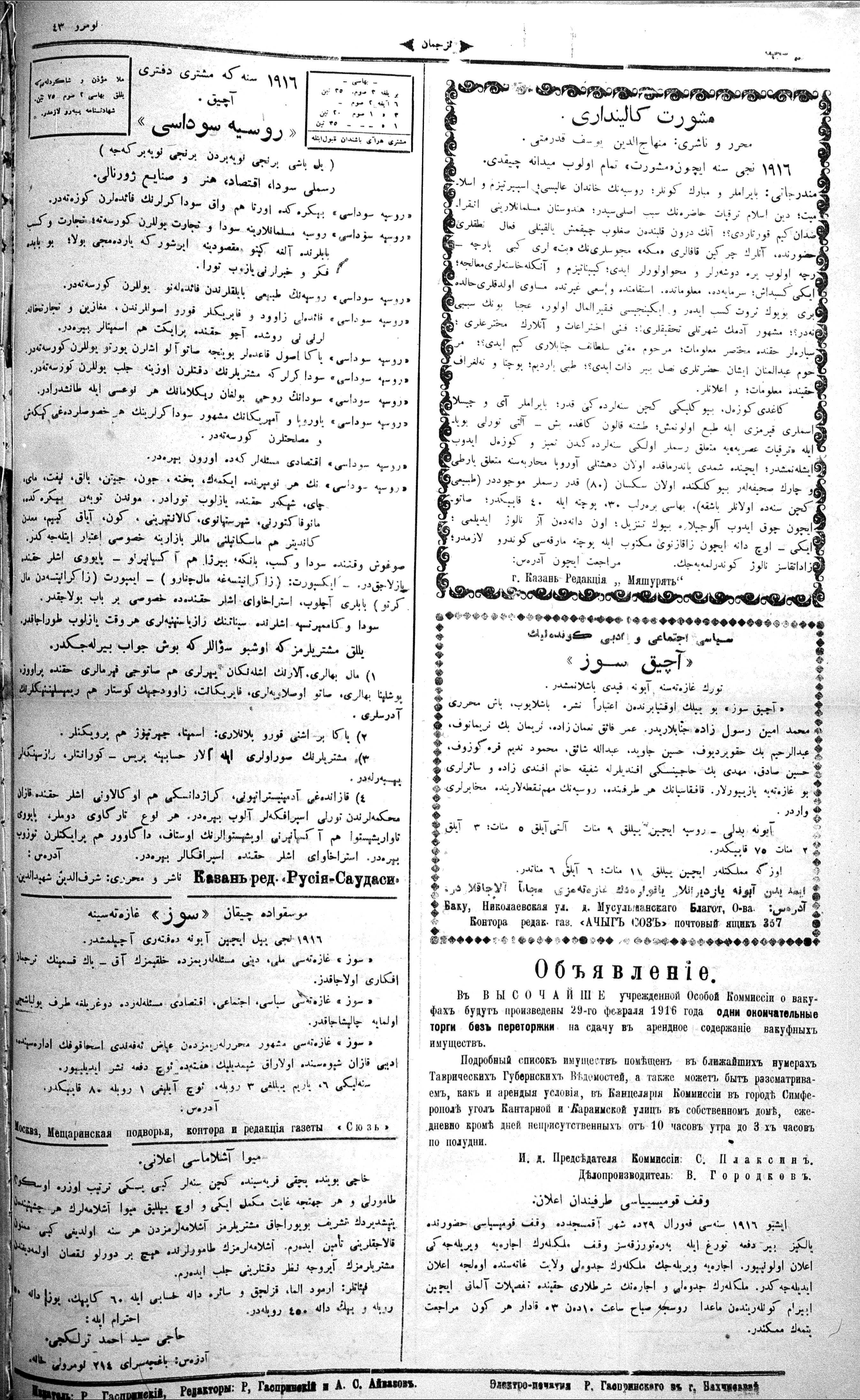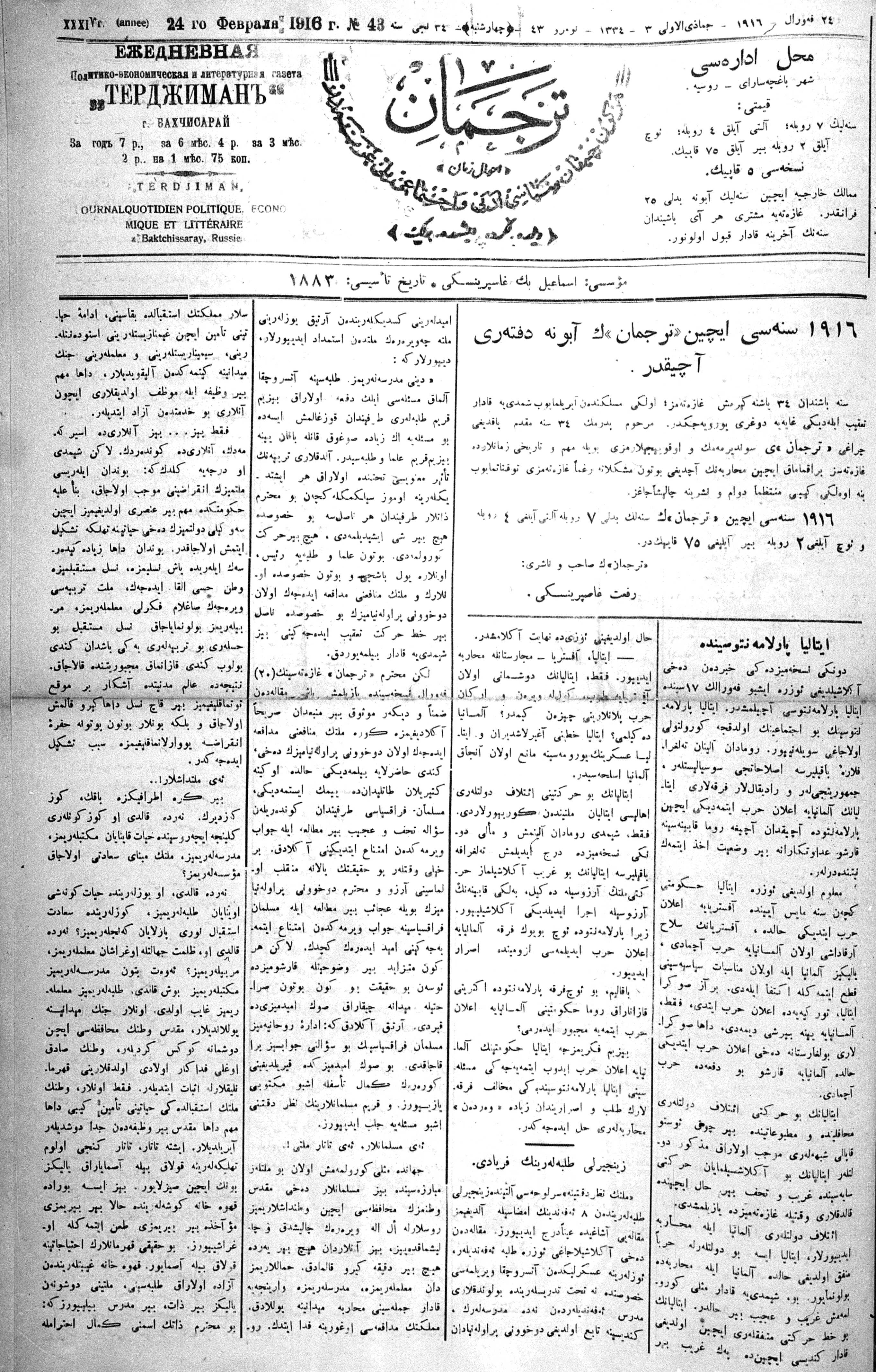 Tercüman, 24 February 1916 Year 34 No 43