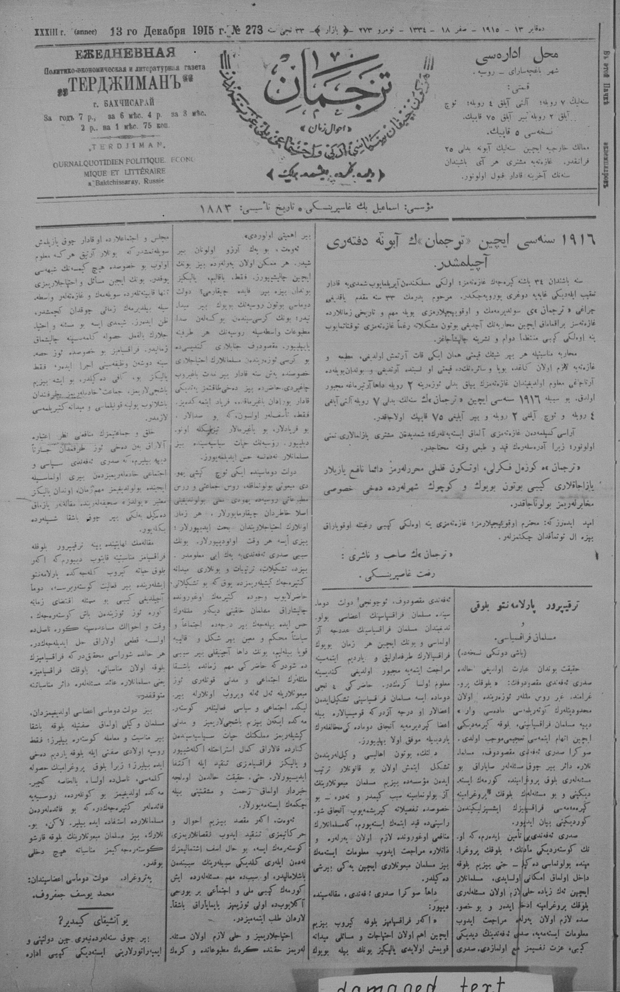 Turkish-Russian newspaper published in Crimea by İsmail Gaspıralı.