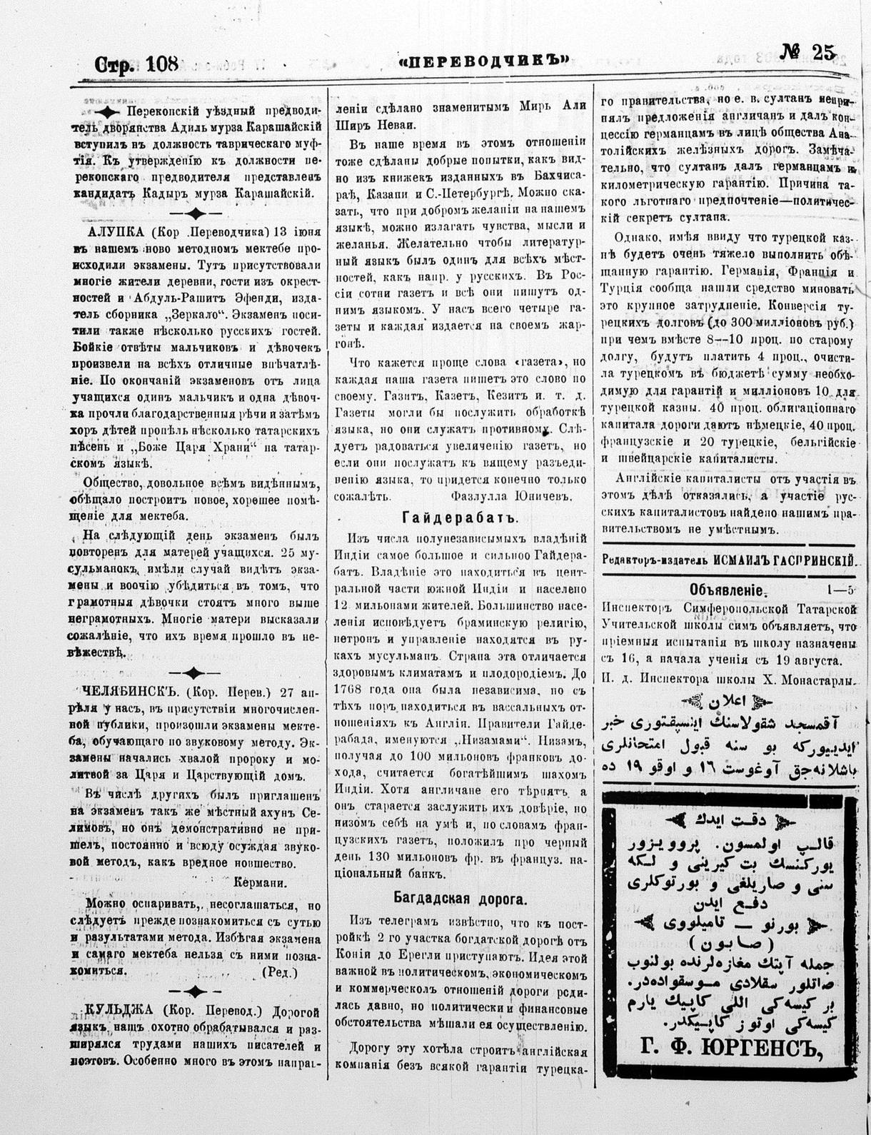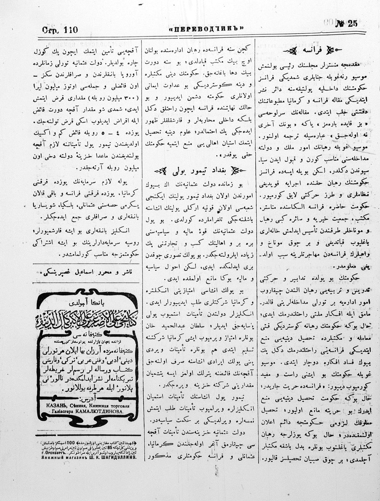 Turkish-Russian newspaper published in Crimea by İsmail Gaspıralı.