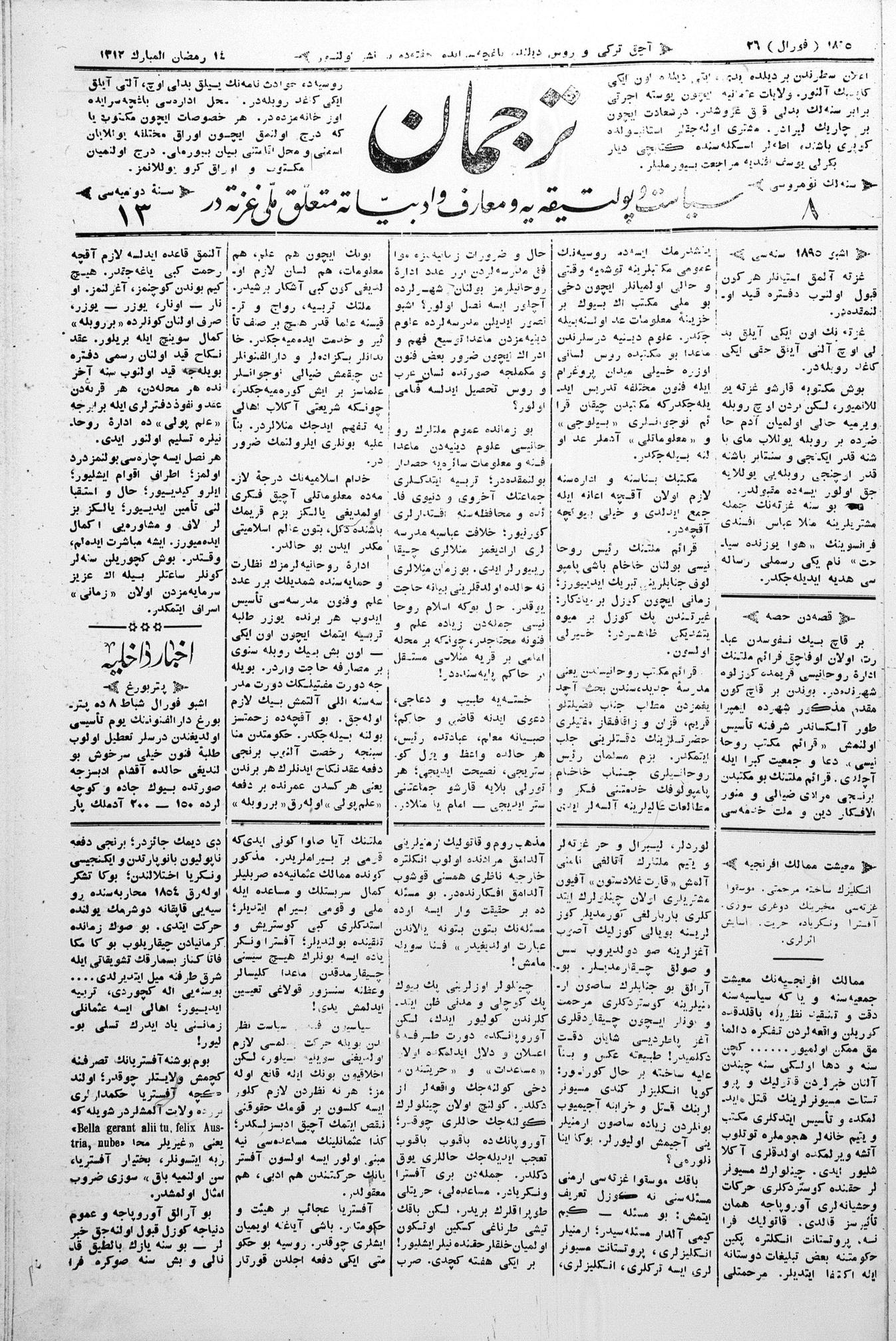 The name of the newspaper changed to Tercüman-ı Ahval-i Zaman in 1905. In 1909, it started to be published under its first name, Tercüman.