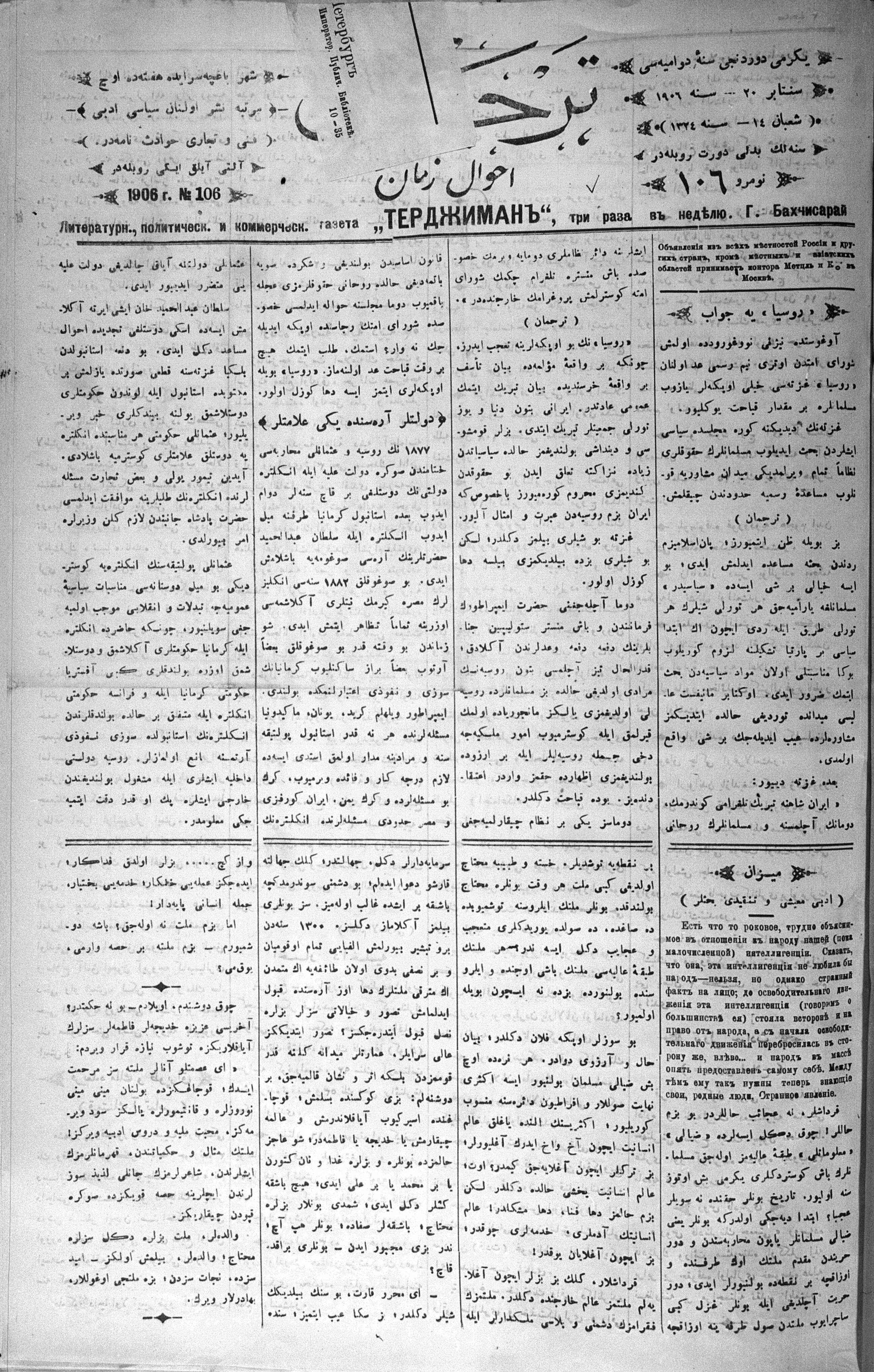 Tercüman, 20 September 1906 Year 24 No 106