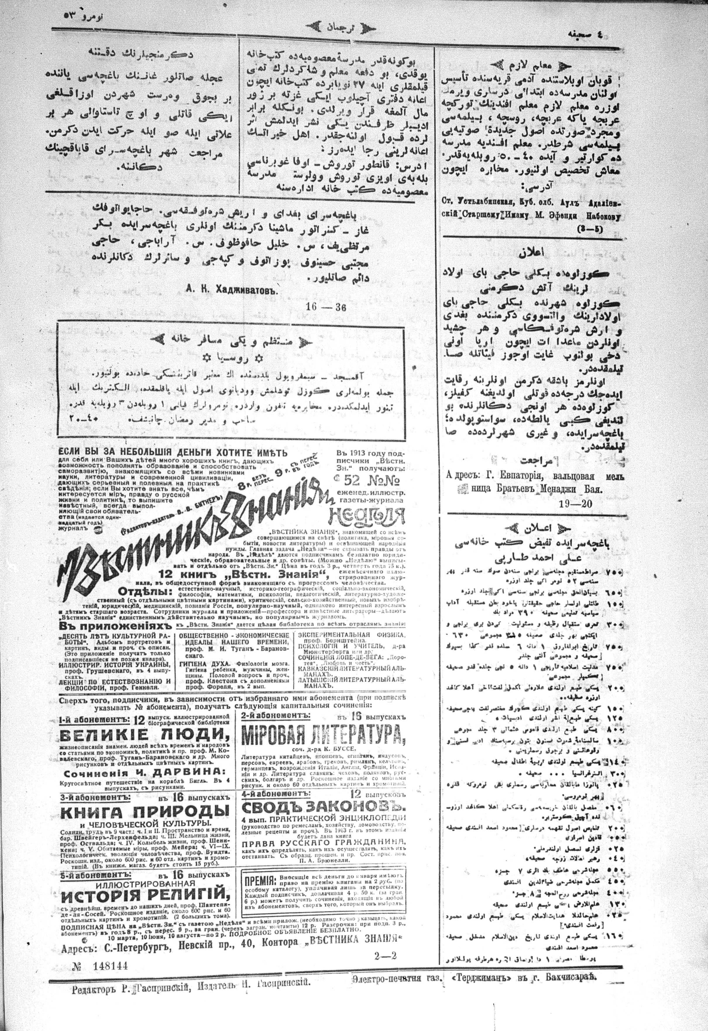 Turkish-Russian newspaper published in Crimea by İsmail Gaspıralı.