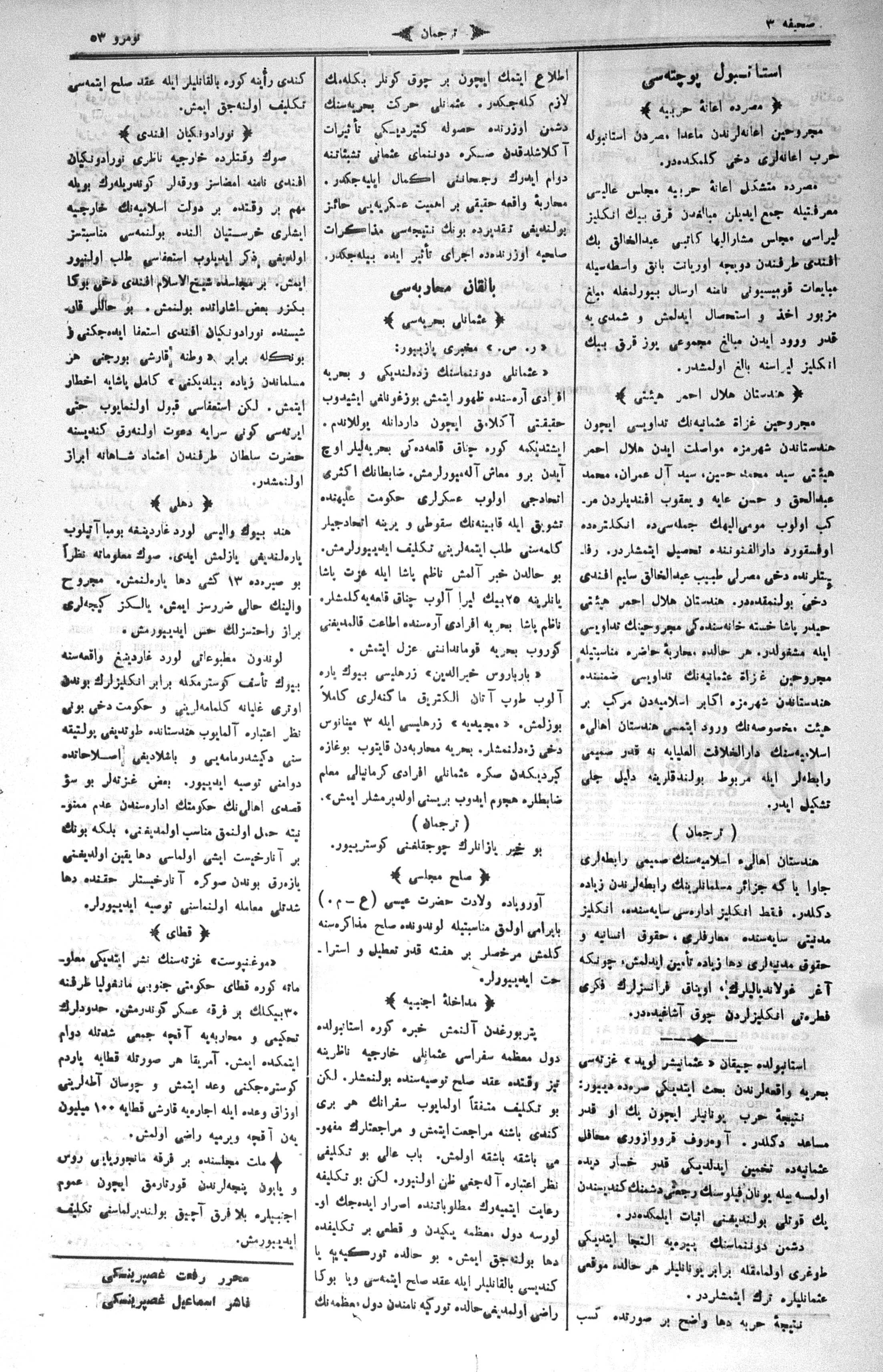 The name of the newspaper changed to Tercüman-ı Ahval-i Zaman in 1905. In 1909, it started to be published under its first name, Tercüman.