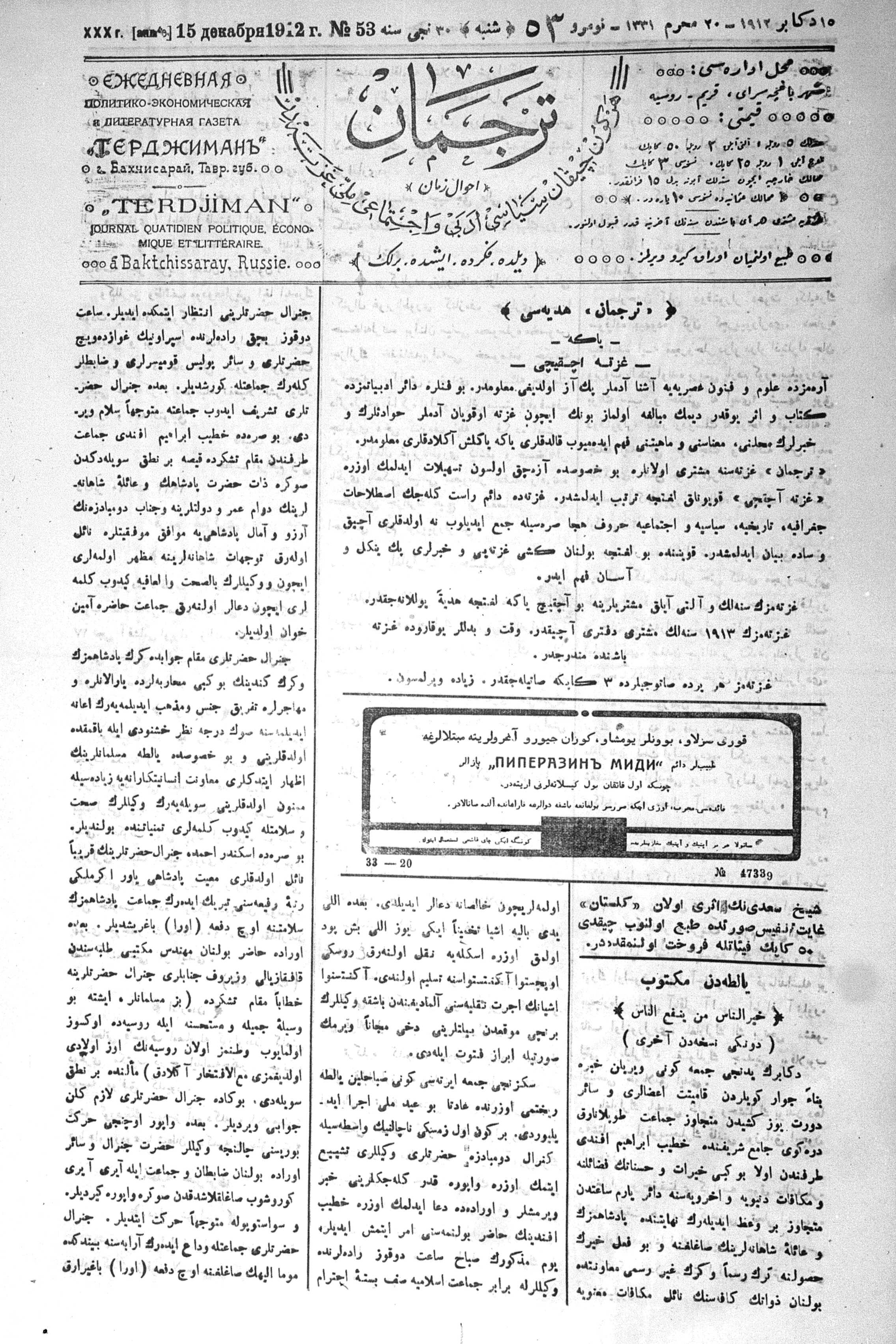 Tercüman, 15 December 1912 Year 30 No 53