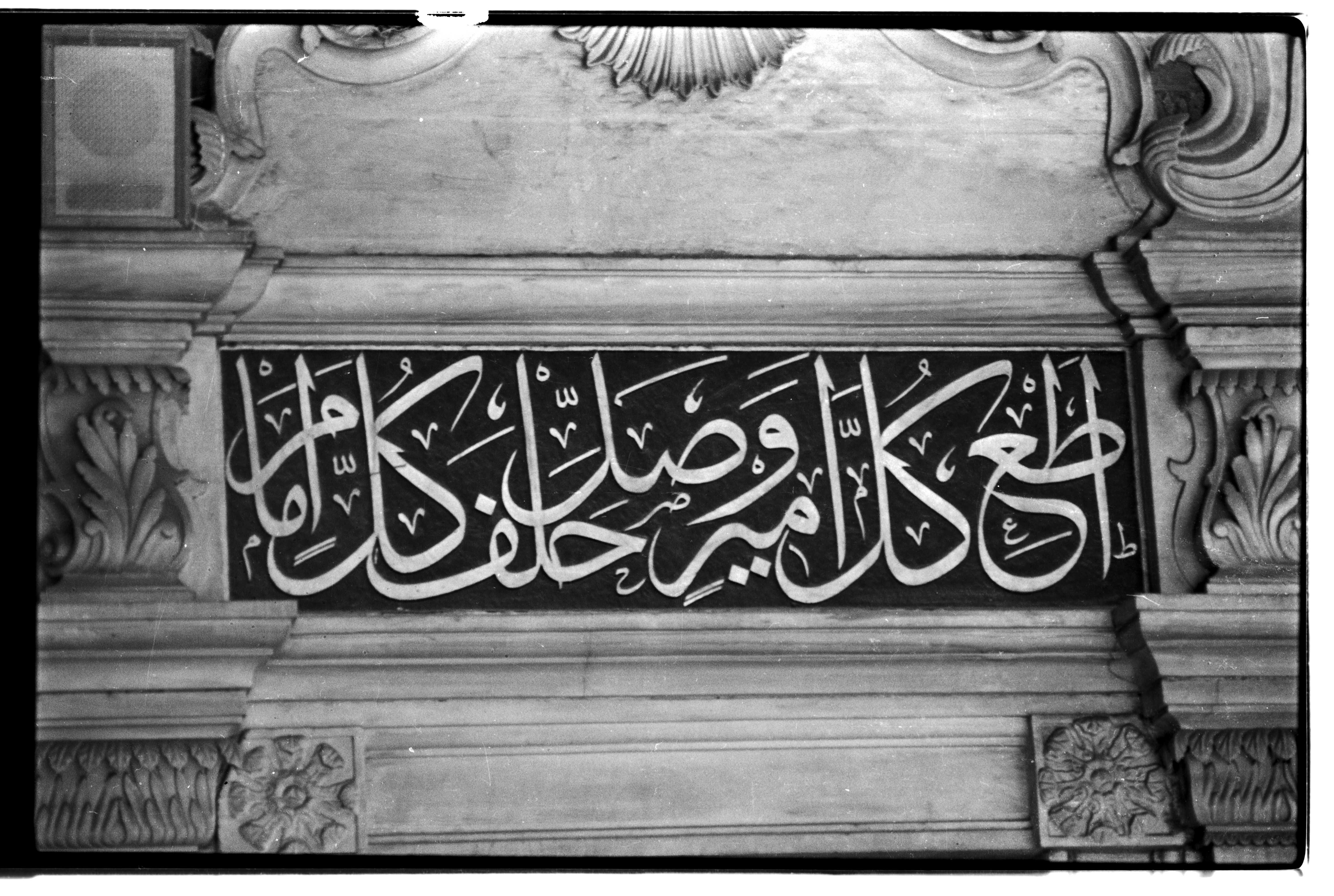 Tophane'deki Nusretiye Camii'nin arka tarafında bulunan ve Hattat Mustafa Rakım Efendi tarafından yazılmış kitabeleri