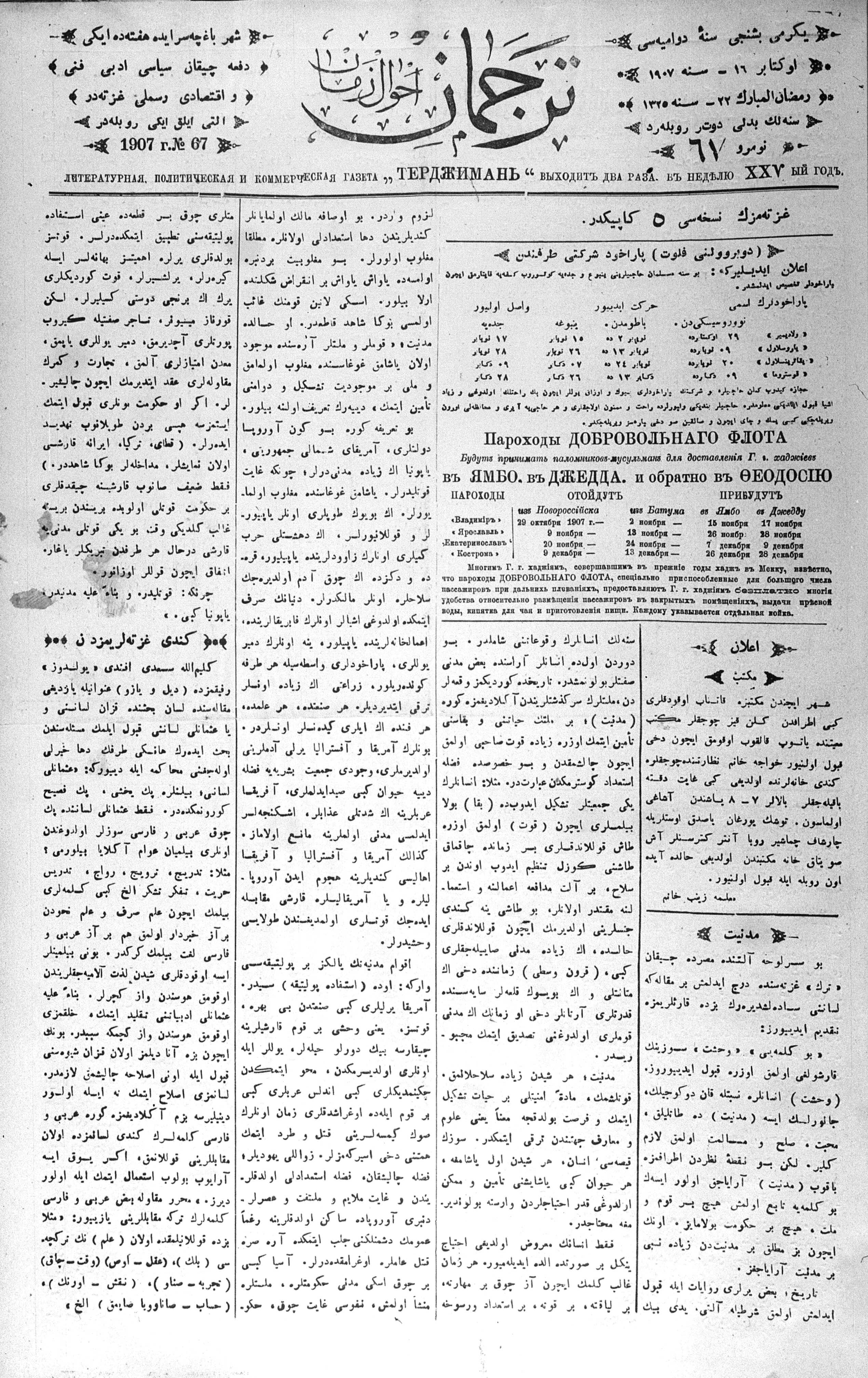 Tercüman, 16 October 1907 Year 25 No 67