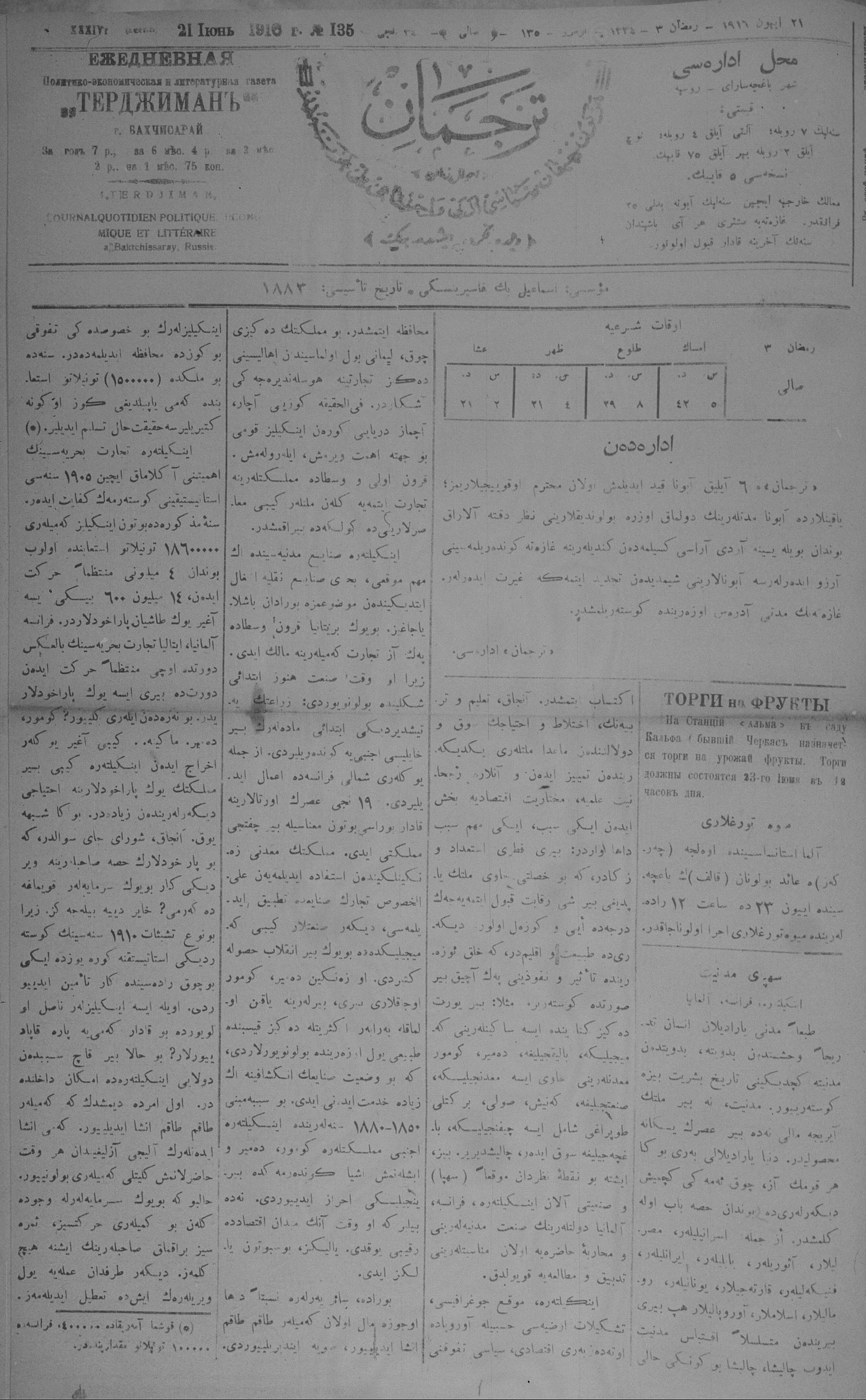 Turkish-Russian newspaper published in Crimea by İsmail Gaspıralı.