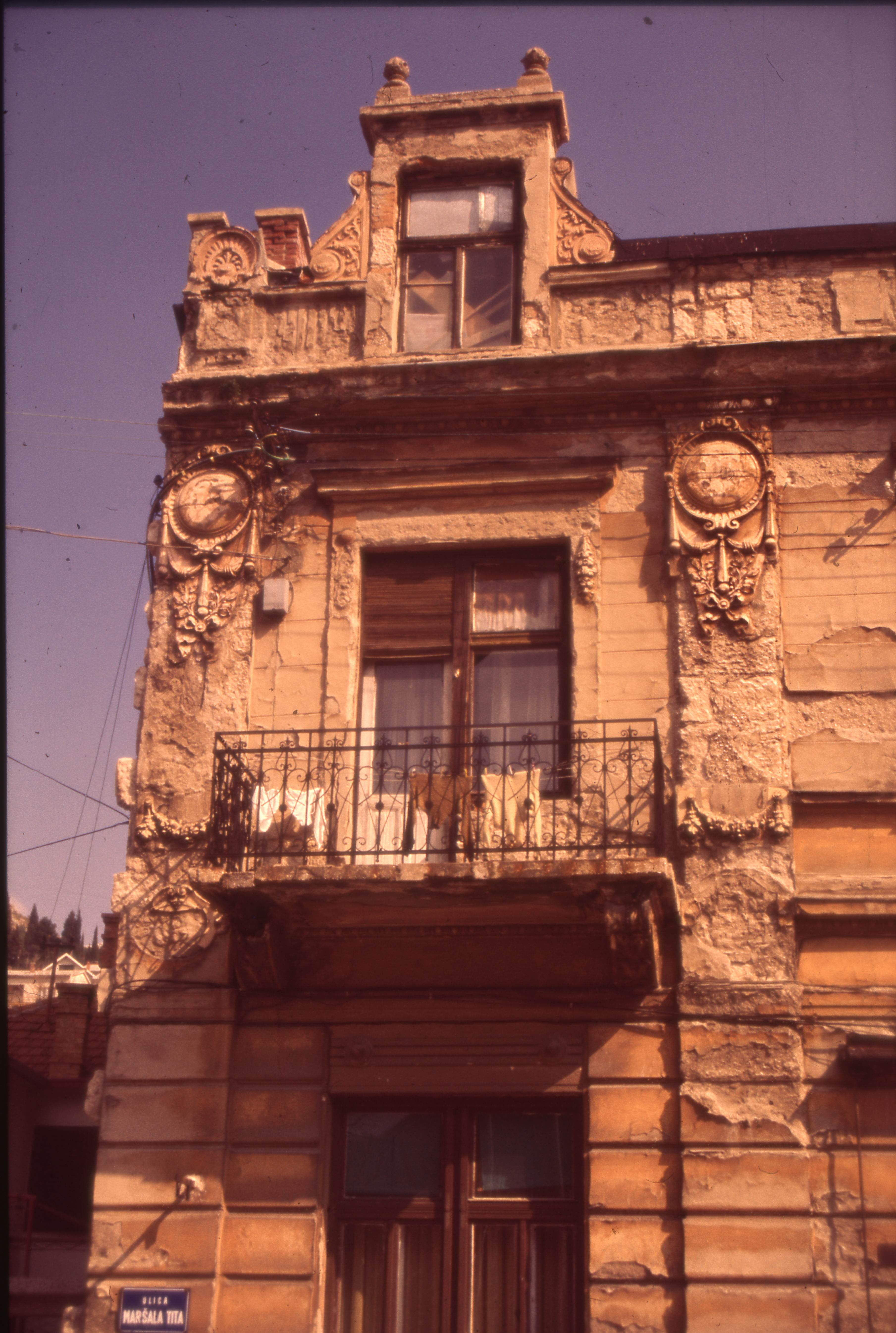 Facade detail from the house on Marshal Tito Street no: 169 in Mostar