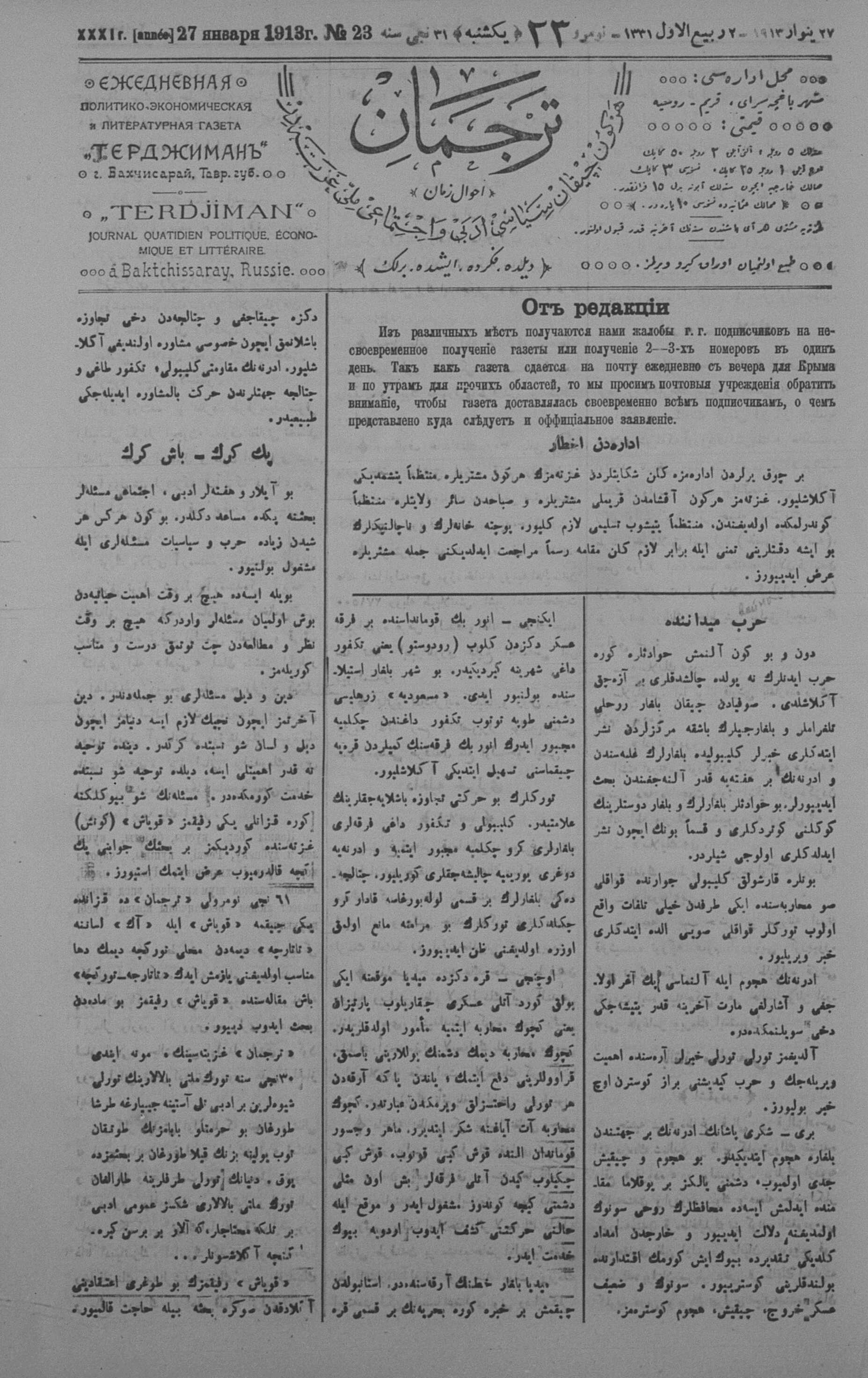 Tercüman, 27 January 1913 Year 31 No 23