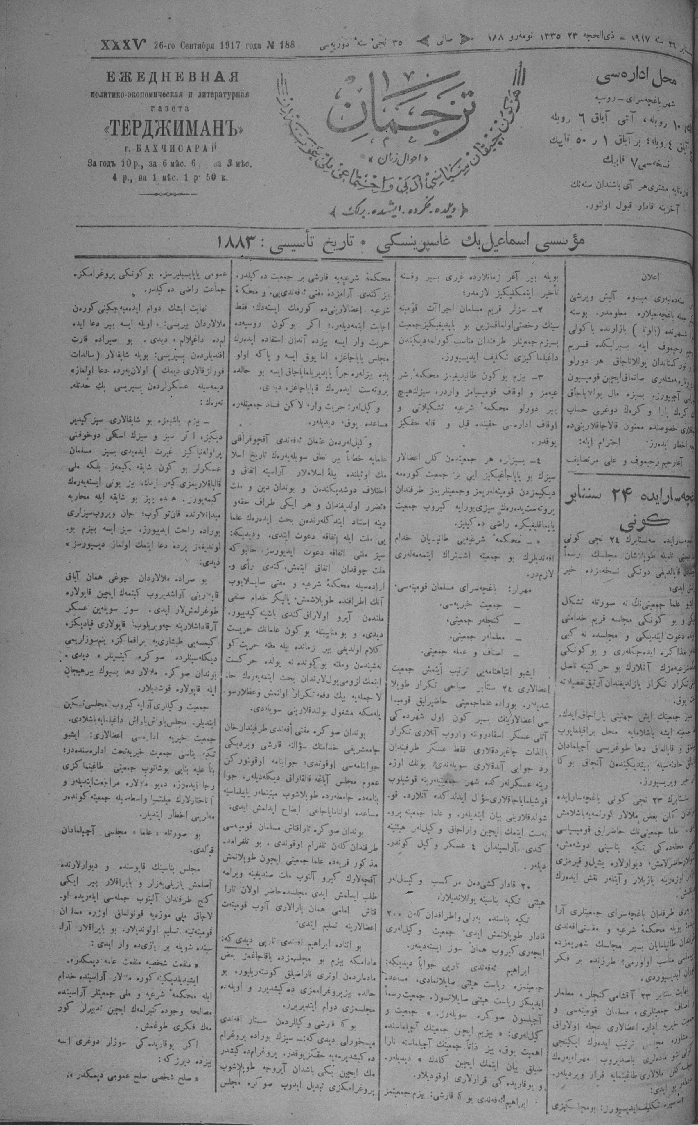 Tercüman, 26 September 1917 Year 35 No 188