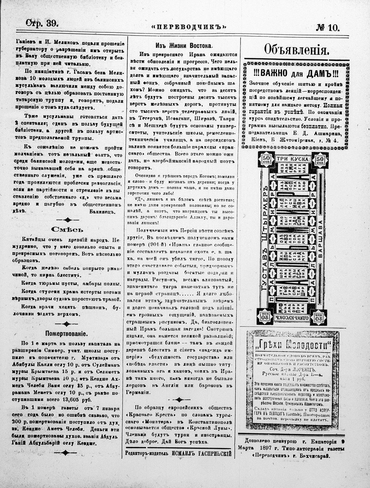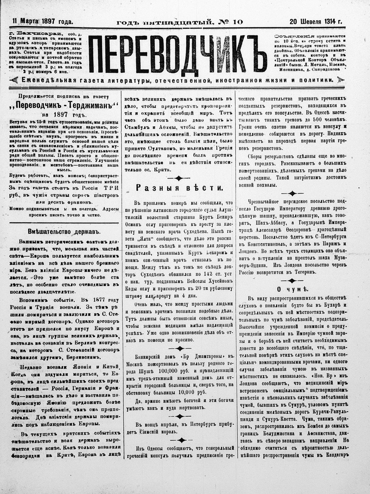 Tercüman, 11 March 1897 Year 15 No 10