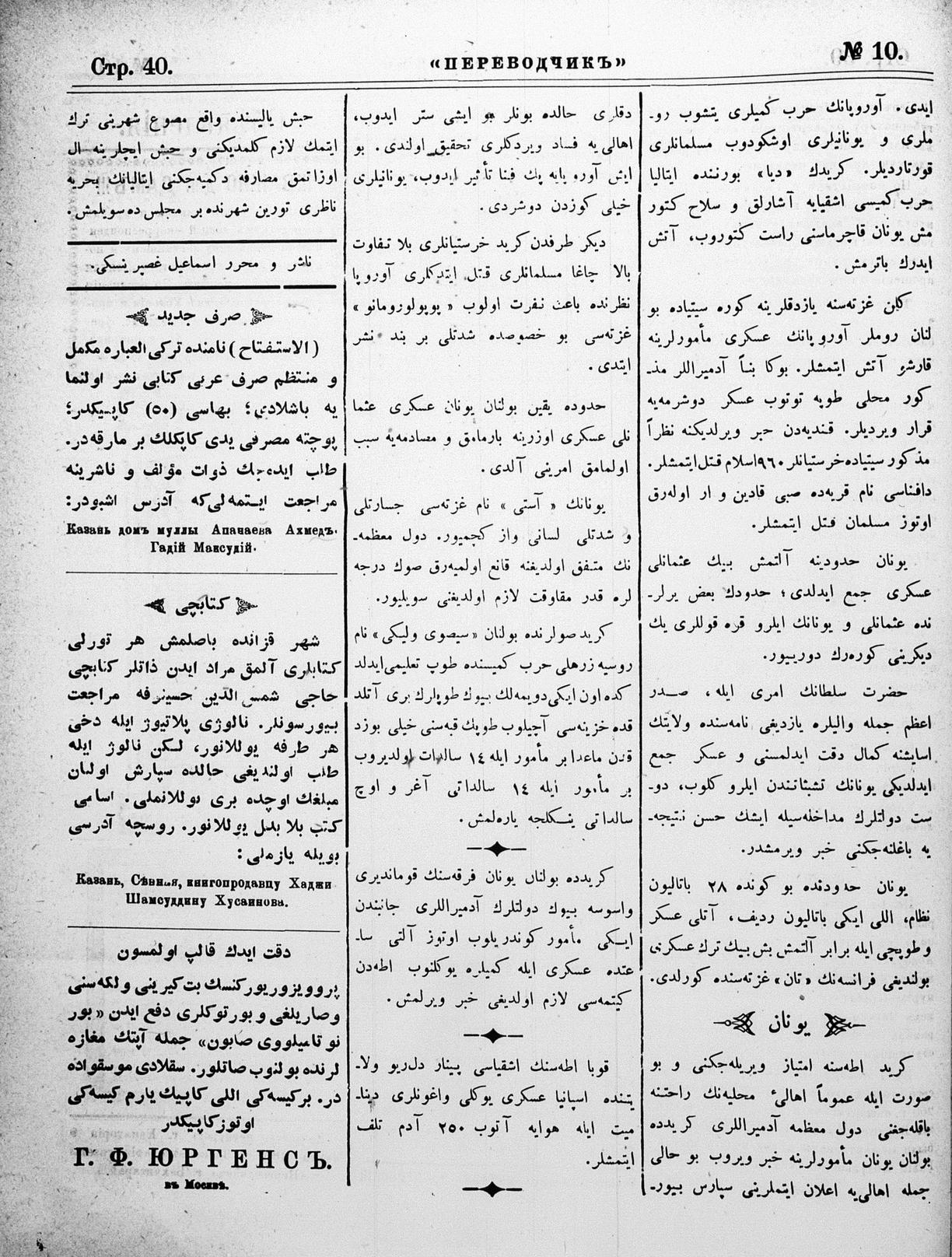 Turkish-Russian newspaper published in Crimea by İsmail Gaspıralı.