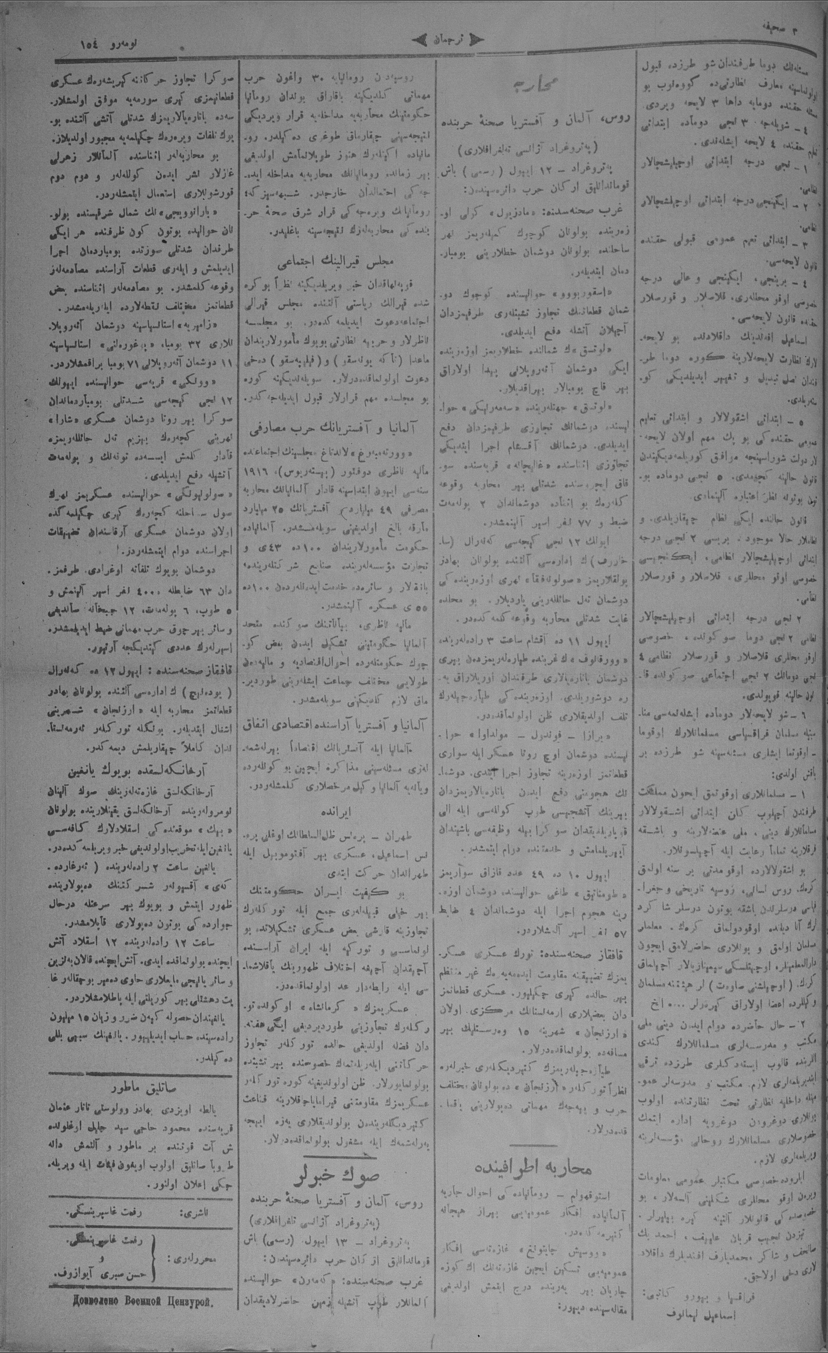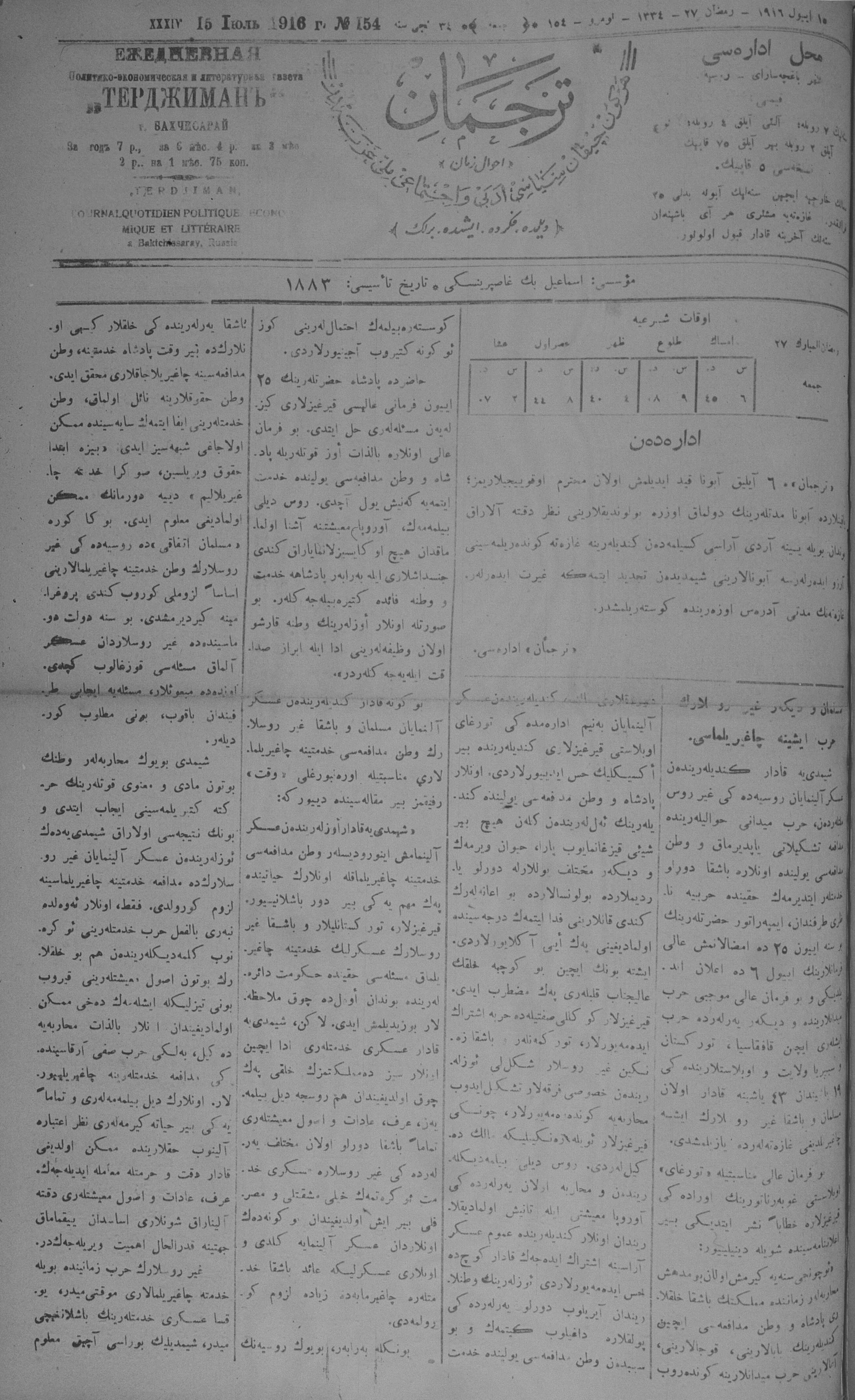 Tercüman, 15 July 1916 Year 34 No 154