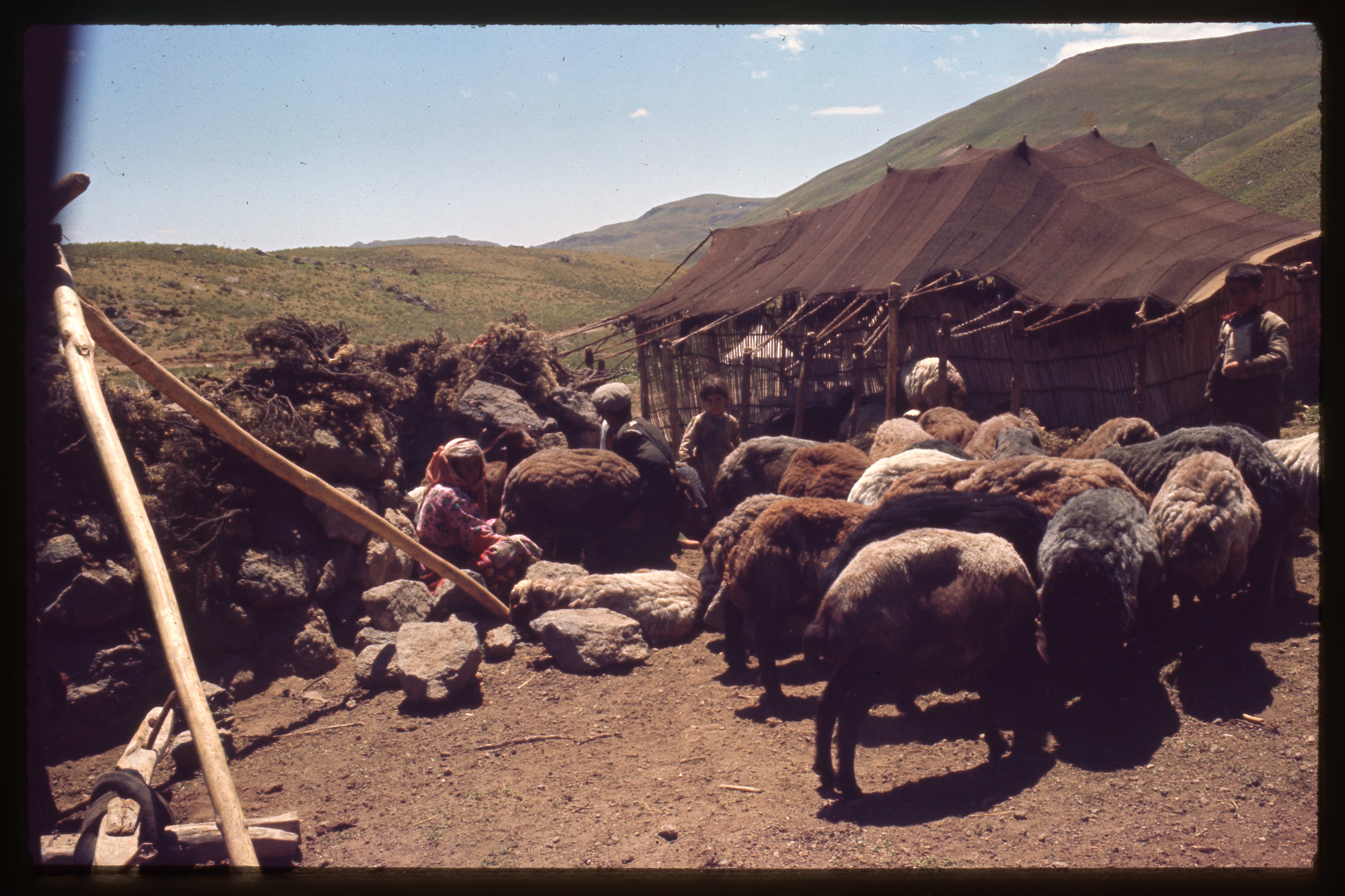 Van-Erciş'te dağlarda yaşayan bir Kürt Aşireti'nin hayvanları ve ahır olarak kullanılan çadırı
