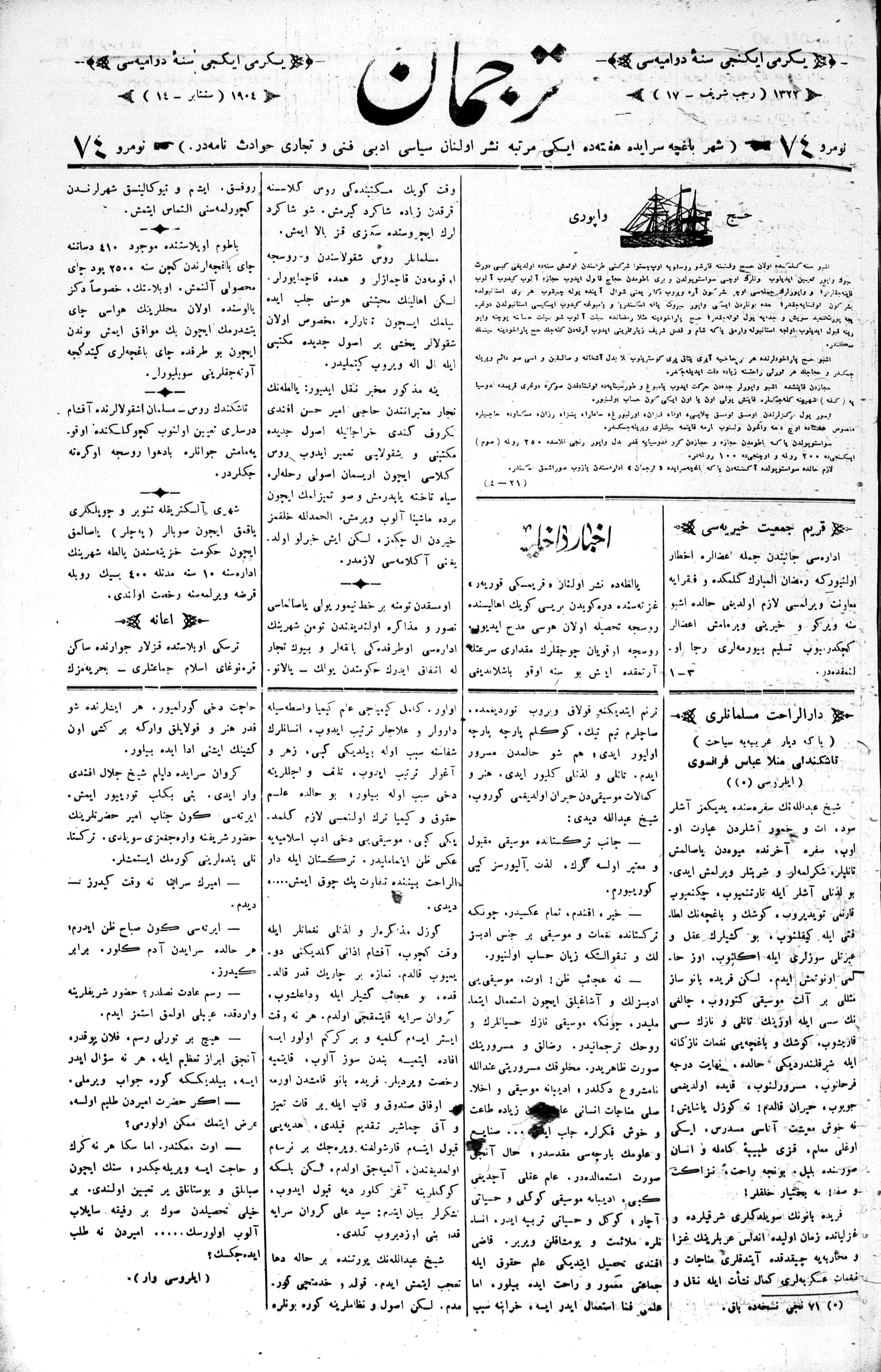 The name of the newspaper changed to Tercüman-ı Ahval-i Zaman in 1905. In 1909, it started to be published under its first name, Tercüman.