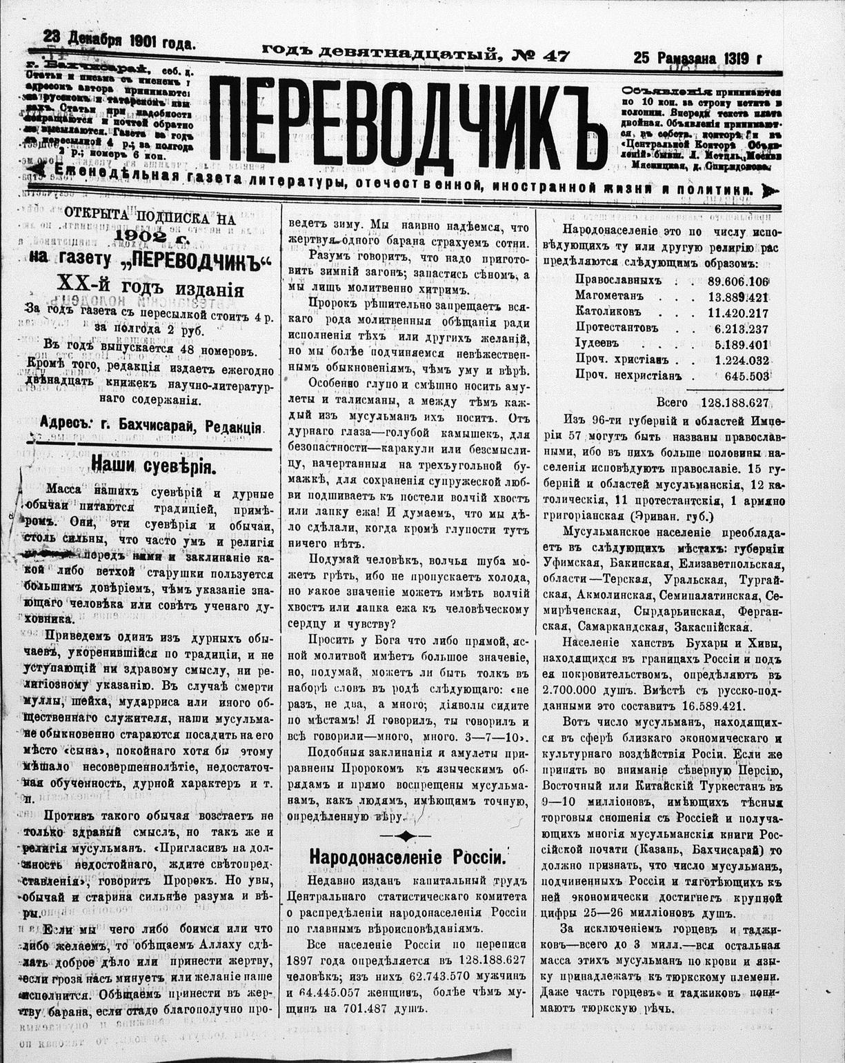 Turkish-Russian newspaper published in Crimea by İsmail Gaspıralı.