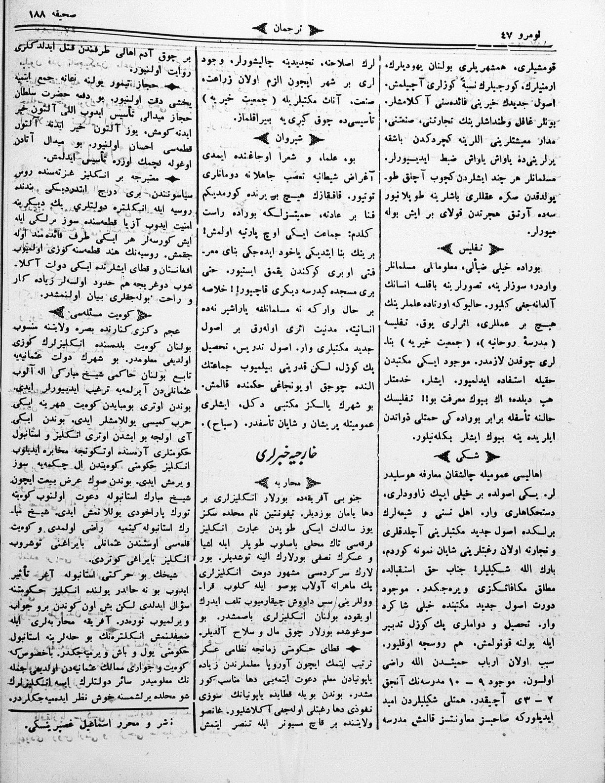 The name of the newspaper changed to Tercüman-ı Ahval-i Zaman in 1905. In 1909, it started to be published under its first name, Tercüman.
