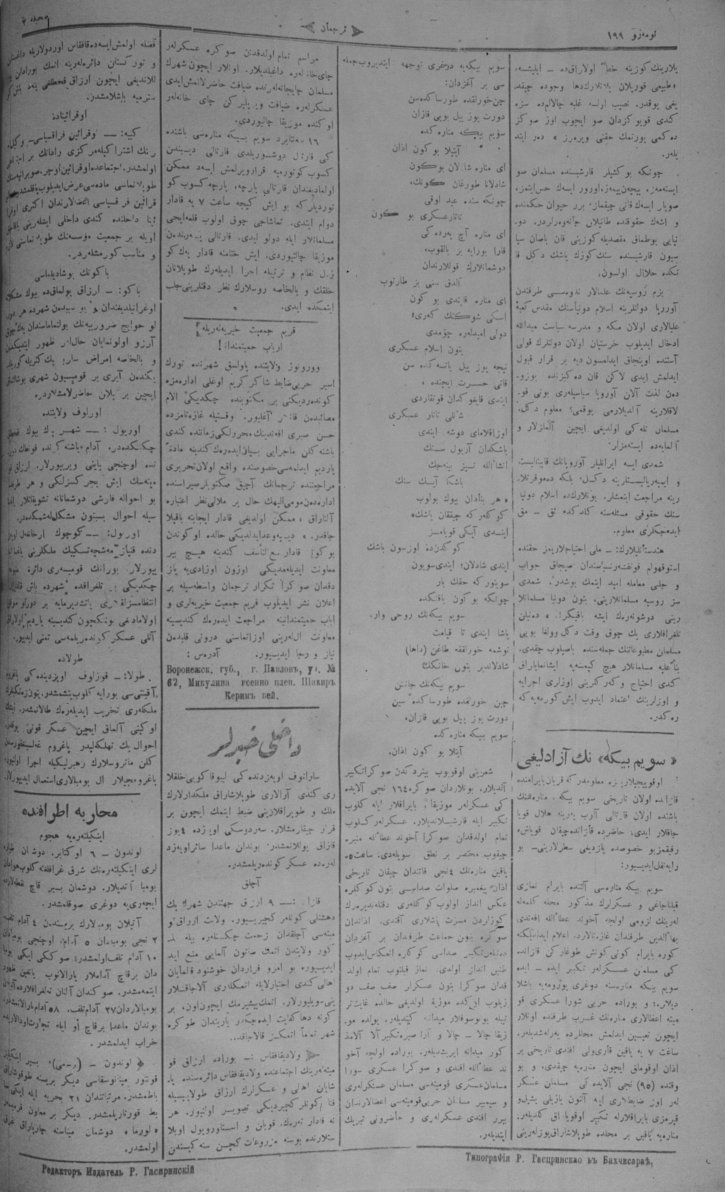 Turkish-Russian newspaper published in Crimea by İsmail Gaspıralı.