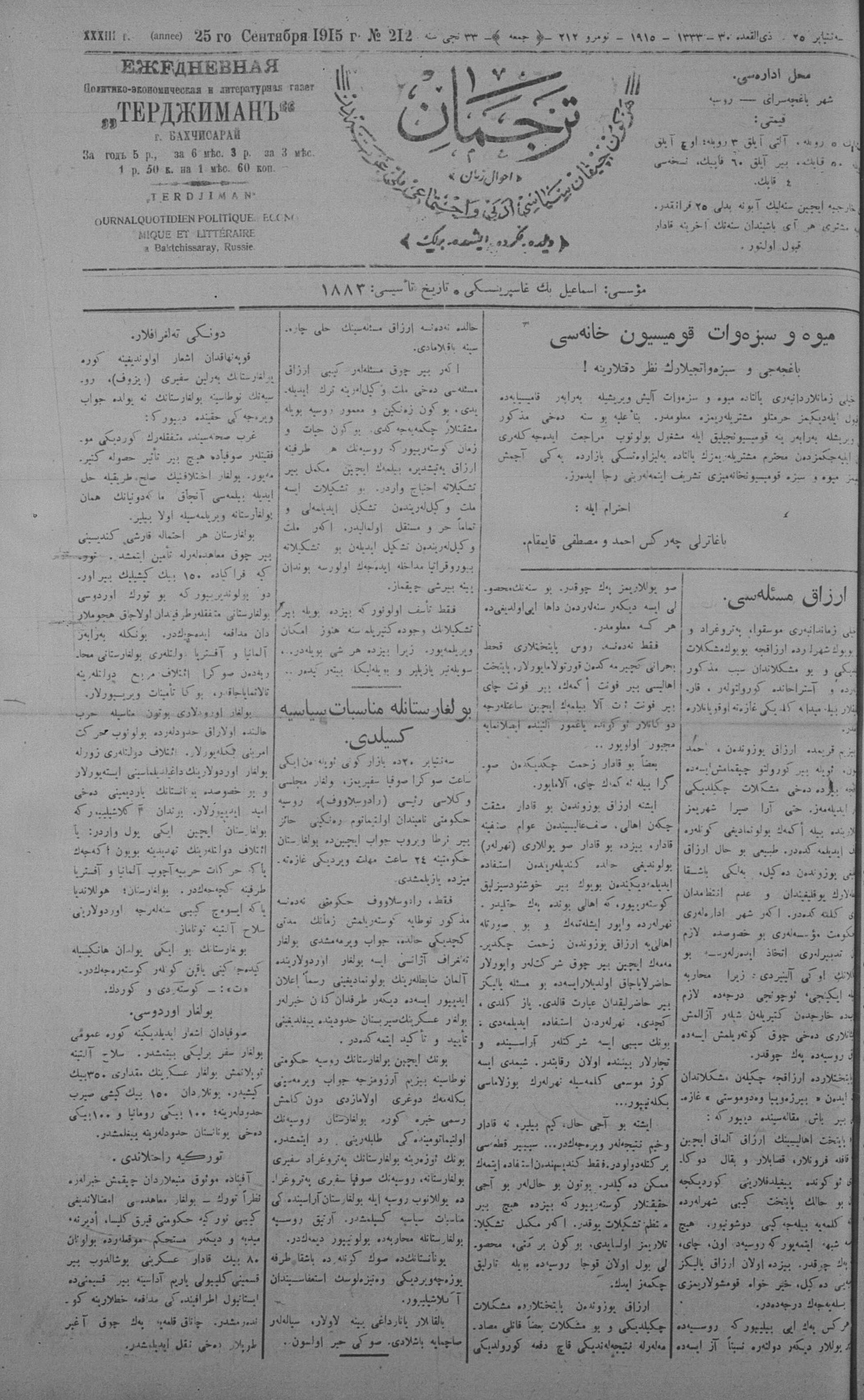 Turkish-Russian newspaper published in Crimea by İsmail Gaspıralı.