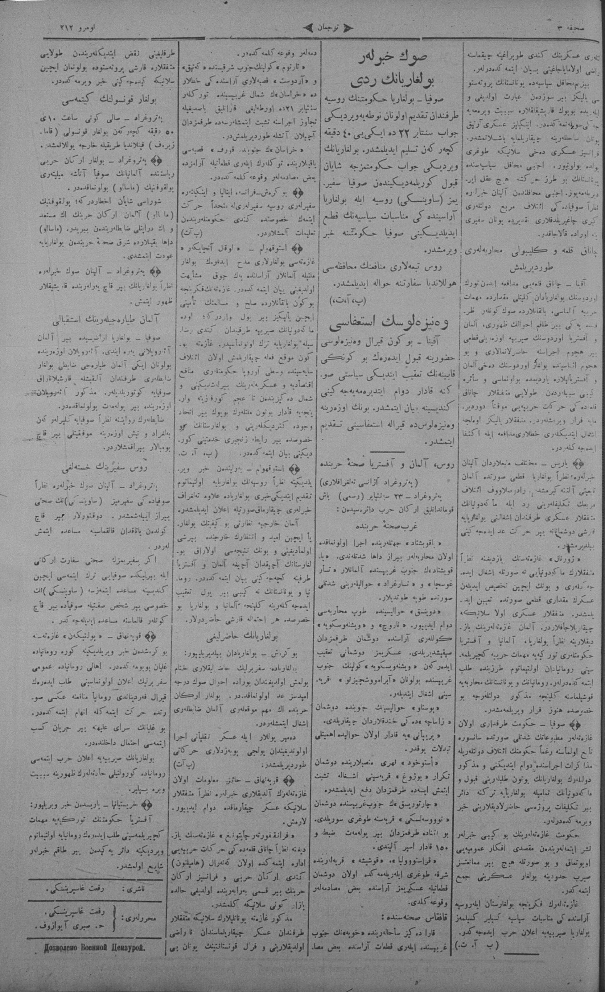 The name of the newspaper changed to Tercüman-ı Ahval-i Zaman in 1905. In 1909, it started to be published under its first name, Tercüman.