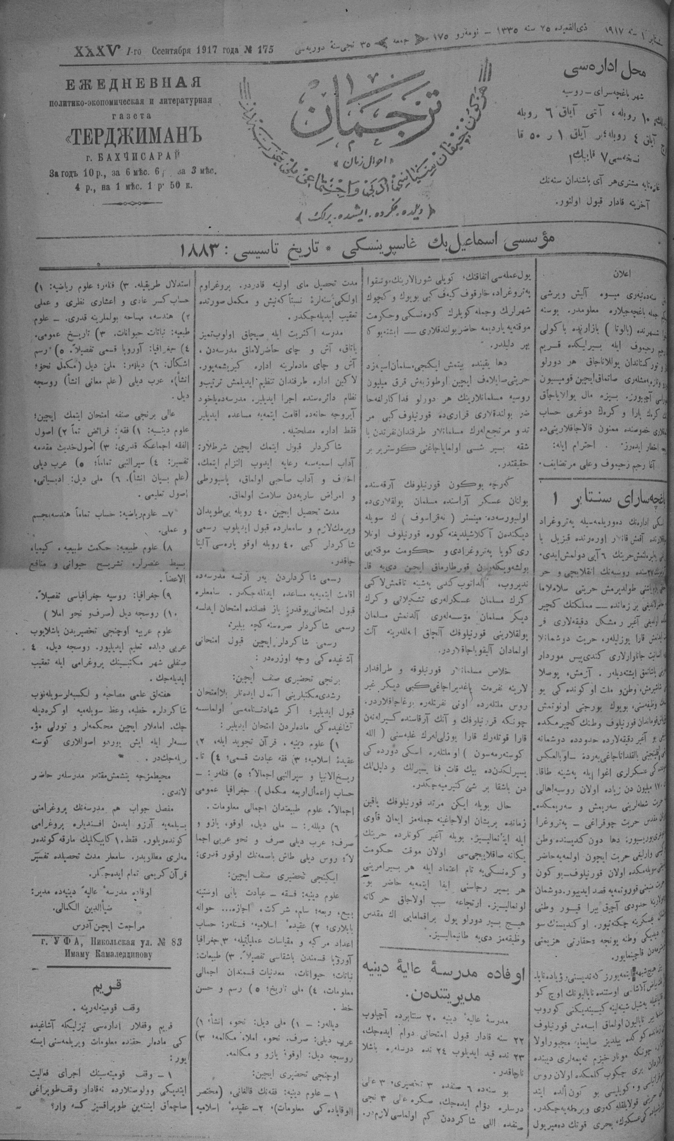 Tercüman, 01 September 1917 Year 35 No 175