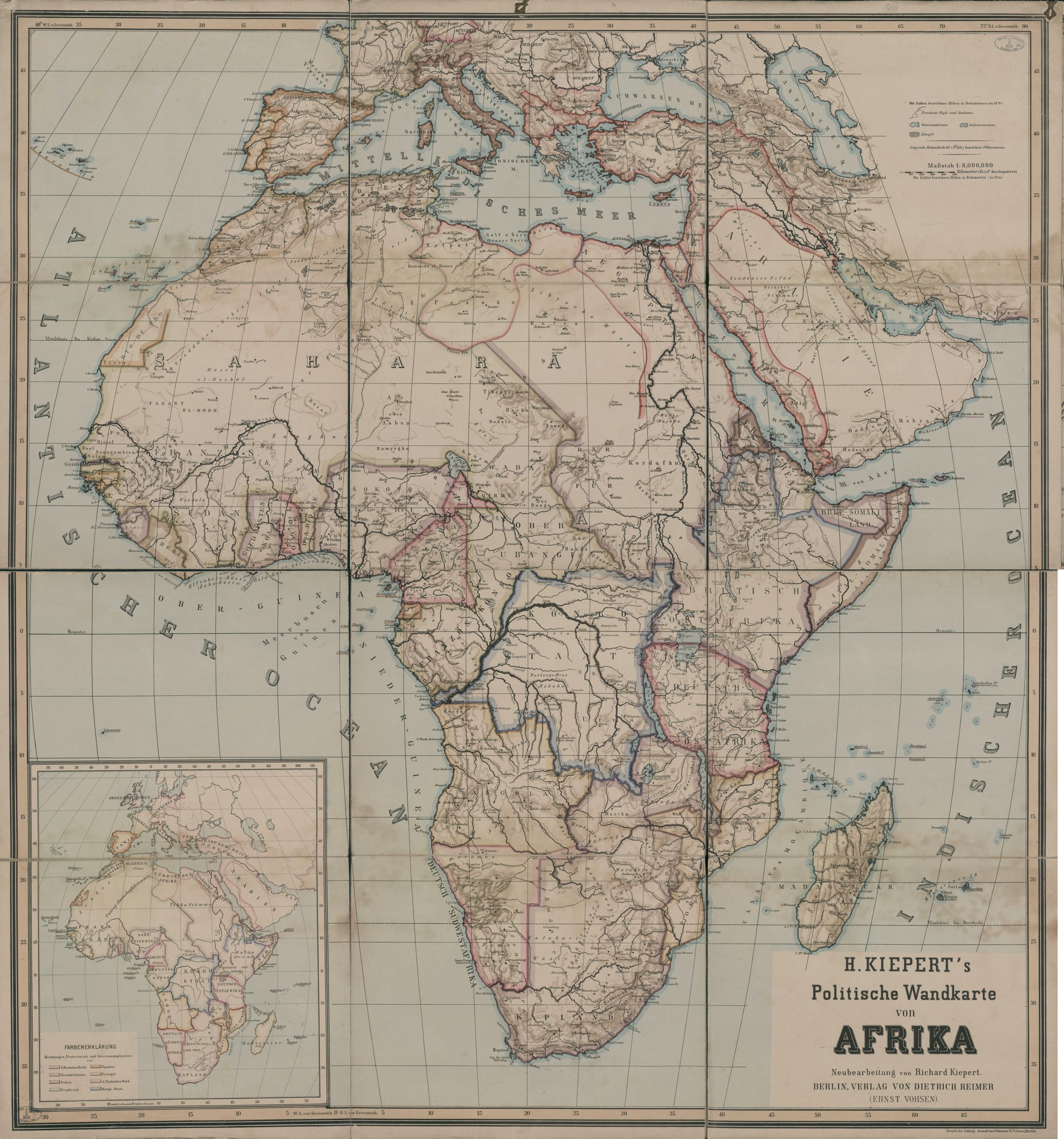 H. Kiepert`s politische wandkarte von Afrika