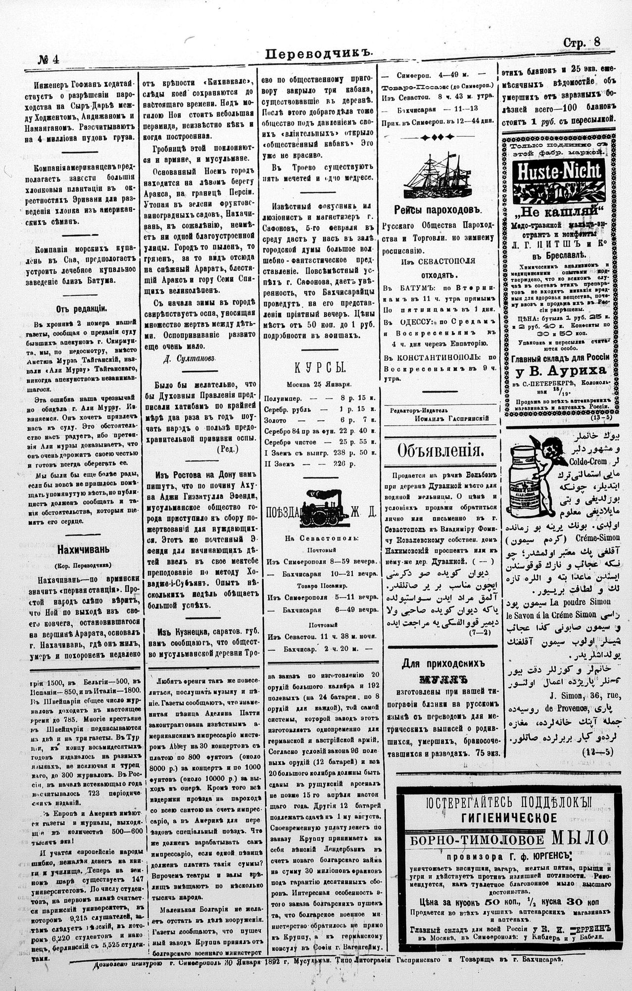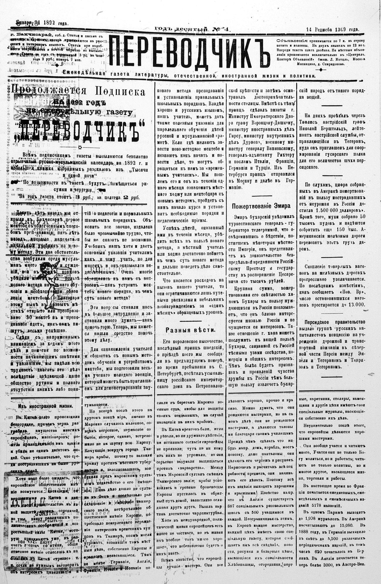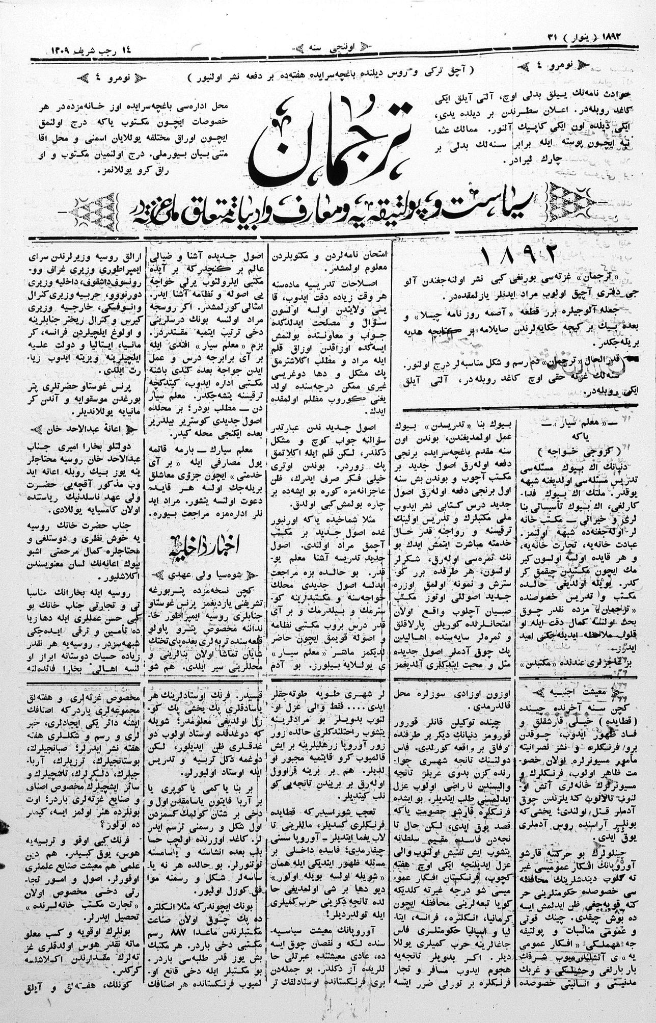 Tercüman, 31 January 1892 Year 10 No 4