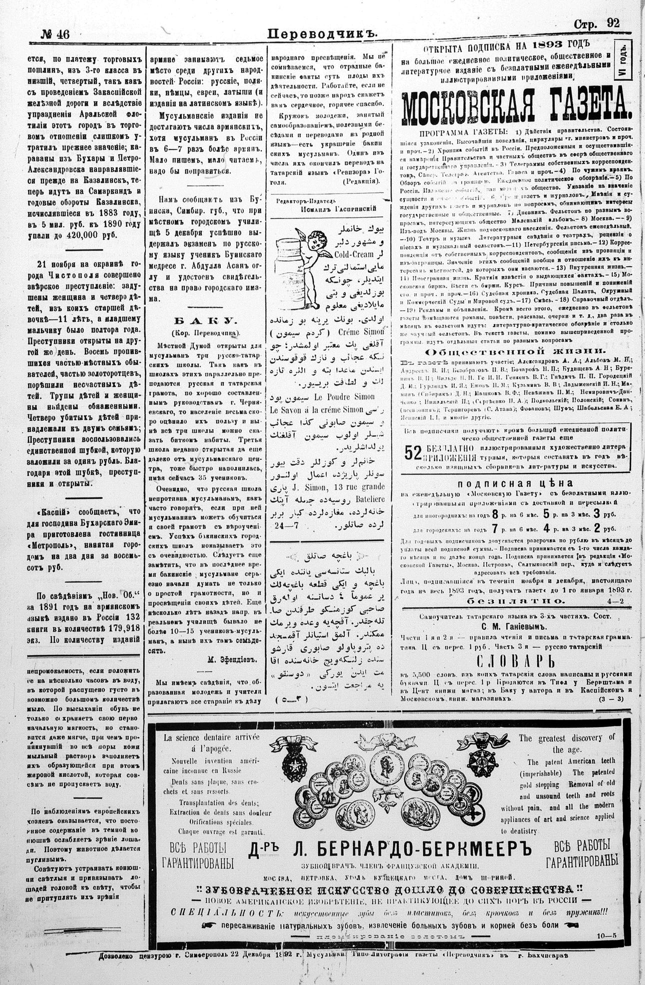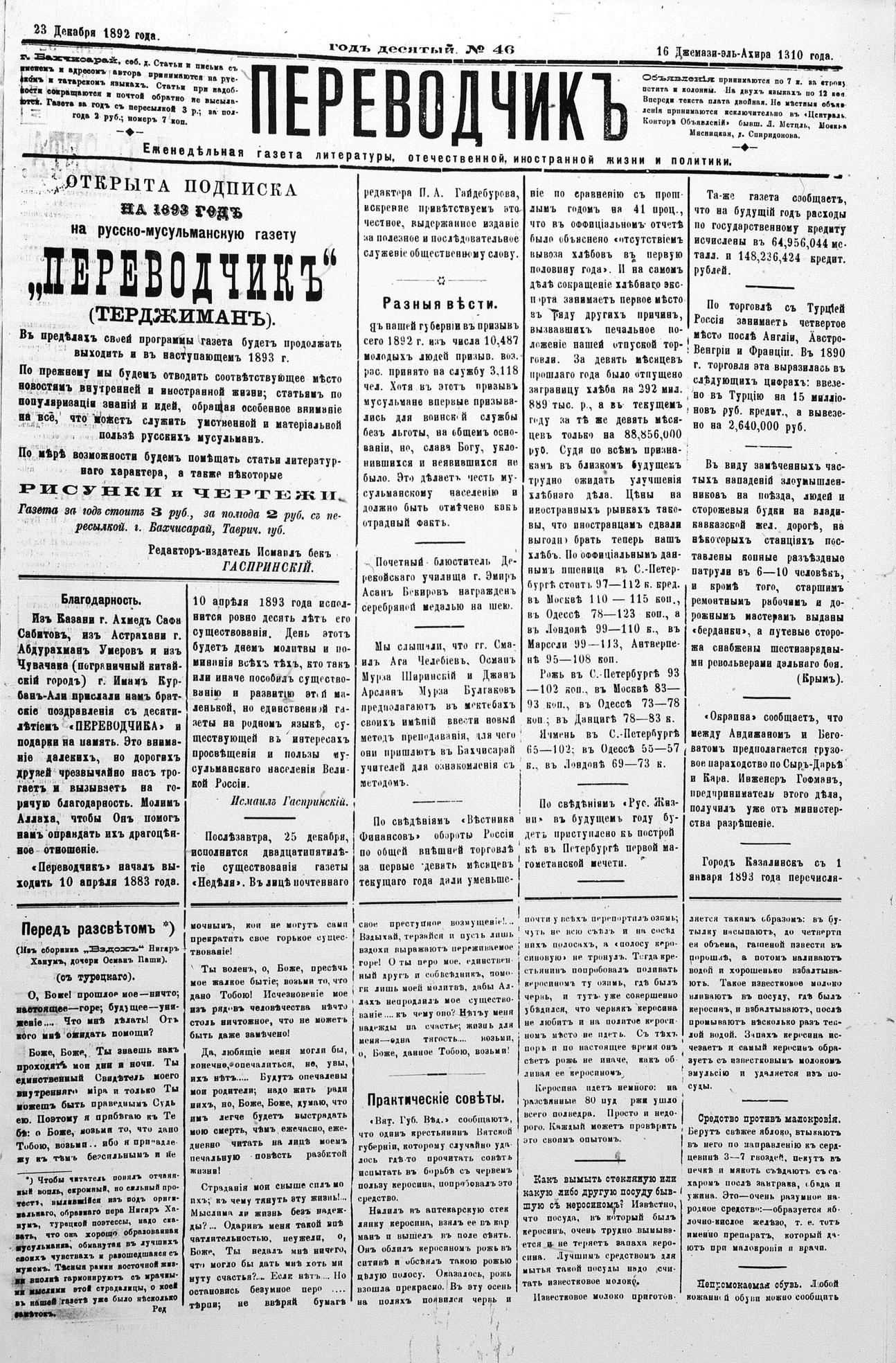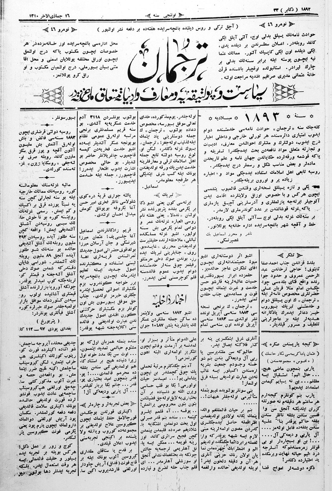 Tercüman, 23 December 1892 Year 10 No 46