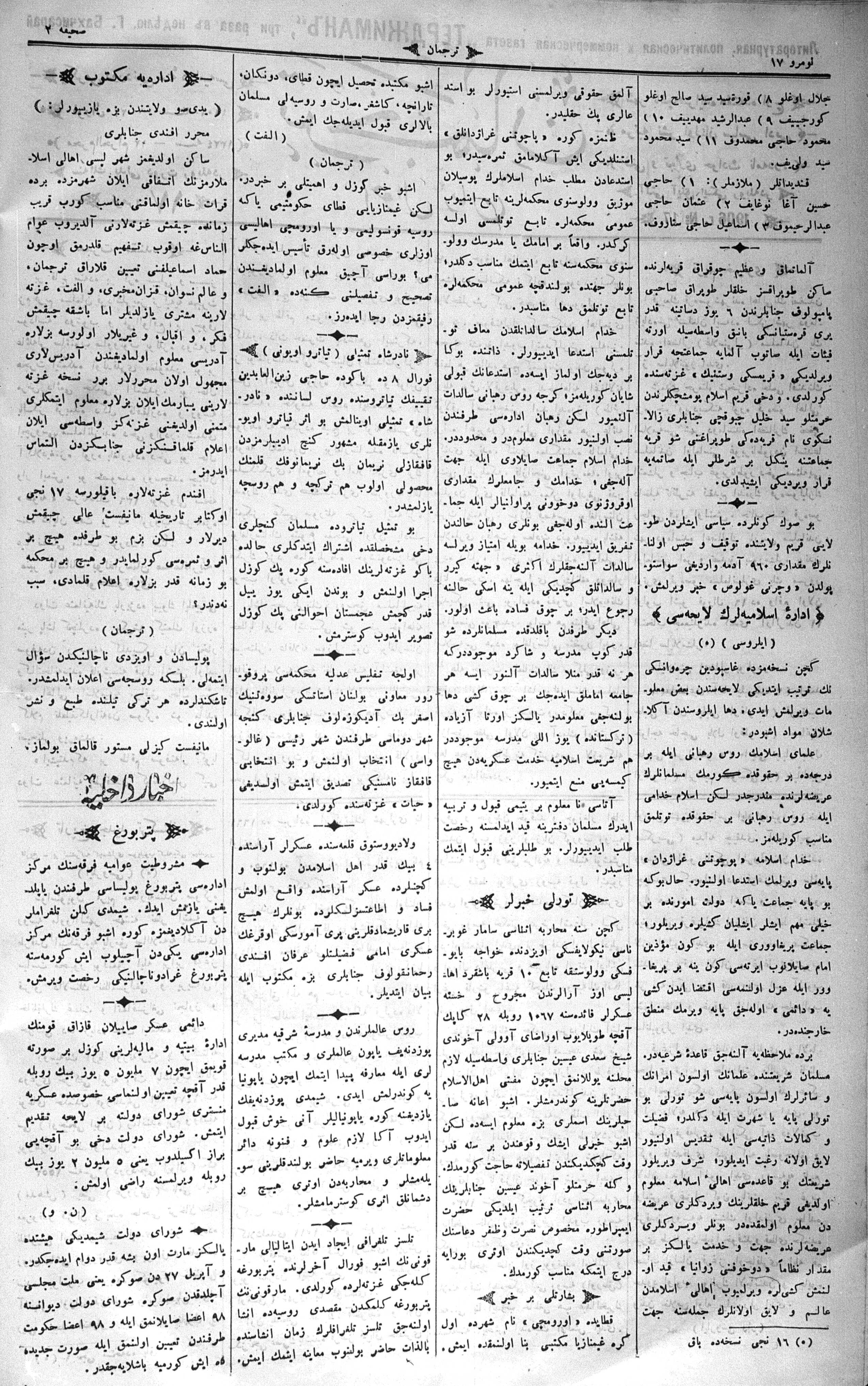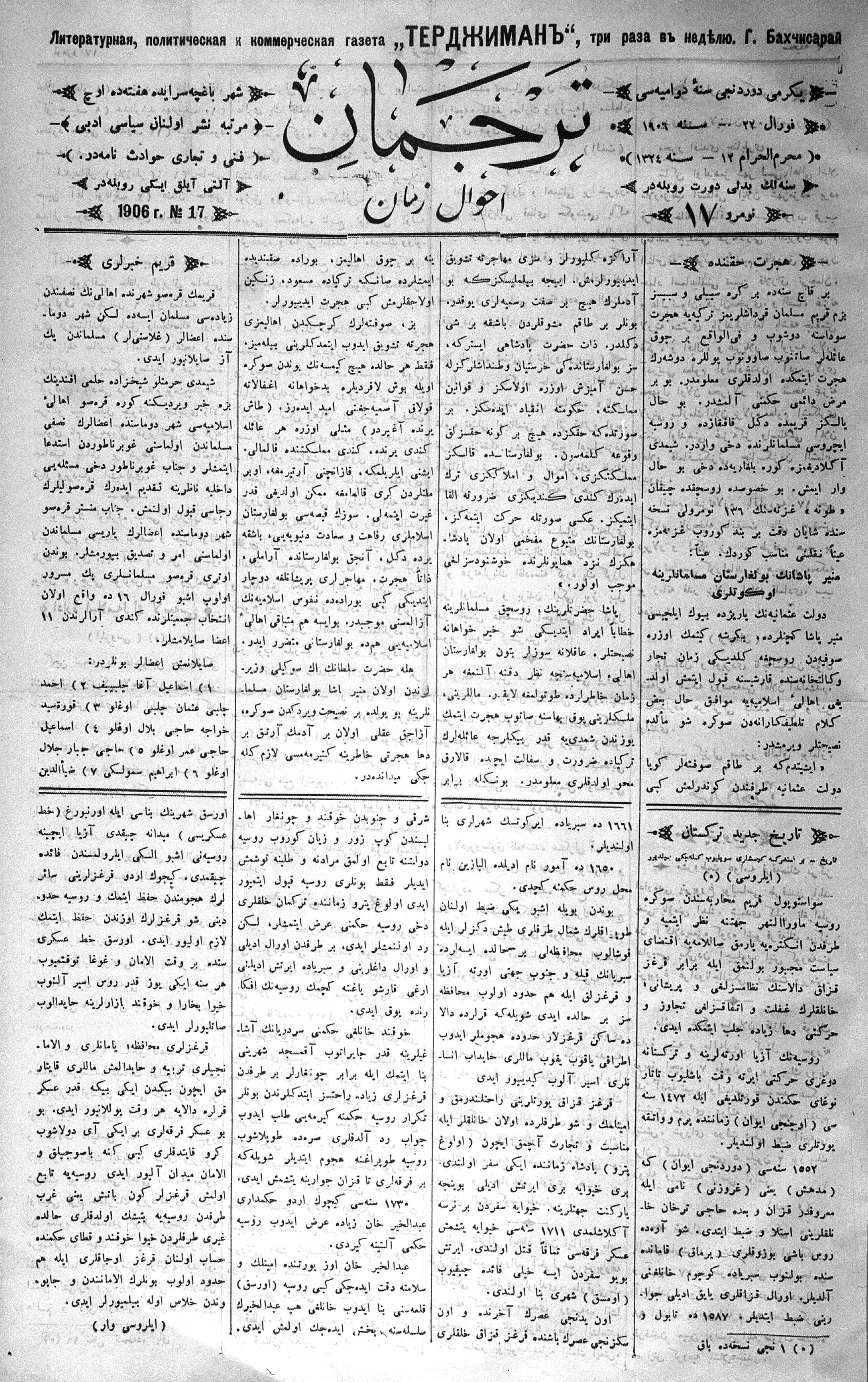 Turkish-Russian newspaper published in Crimea by İsmail Gaspıralı.