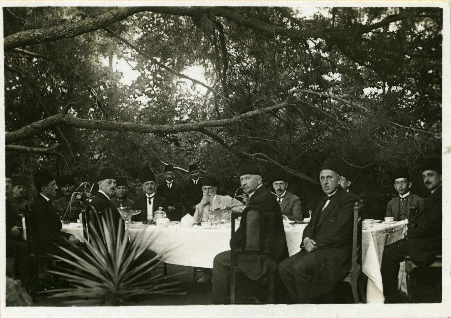 Halife Abdülmecid Efendi, Ekrem Rüştü Akömer ve maiyeti bir yemekte