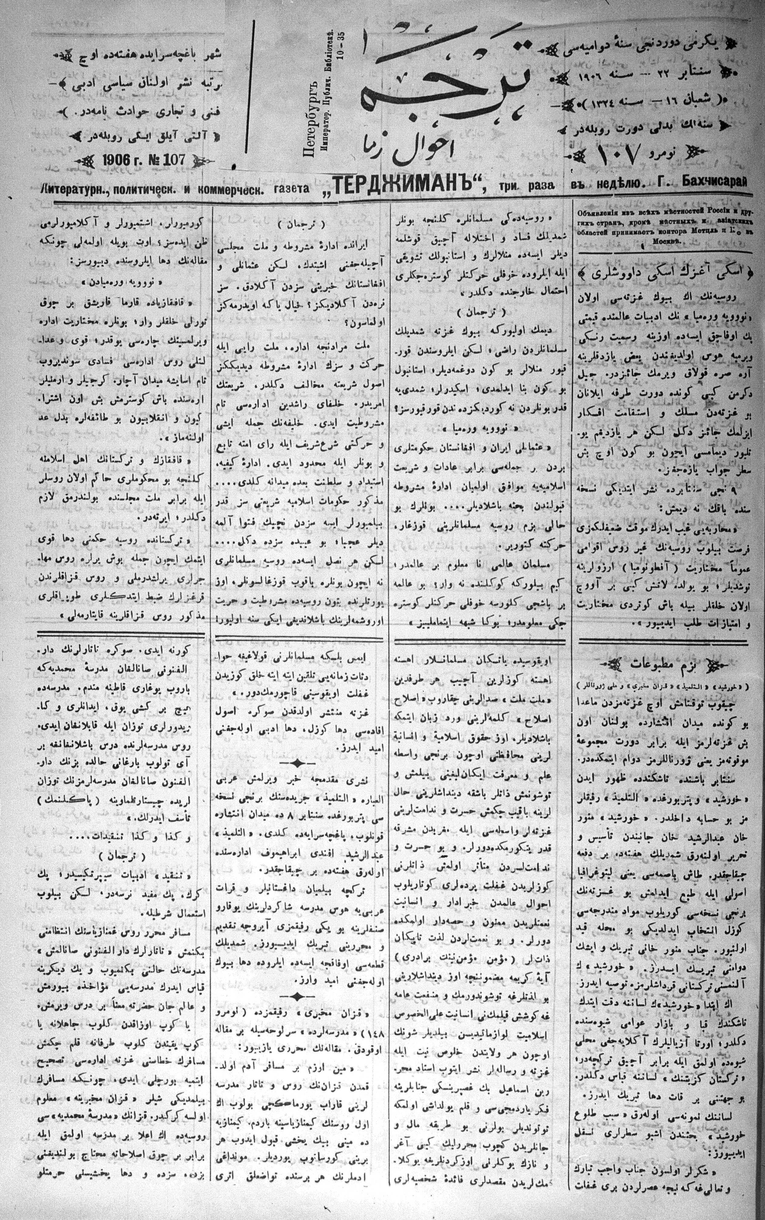 Tercüman, 22 September 1906 Year 24 No 107