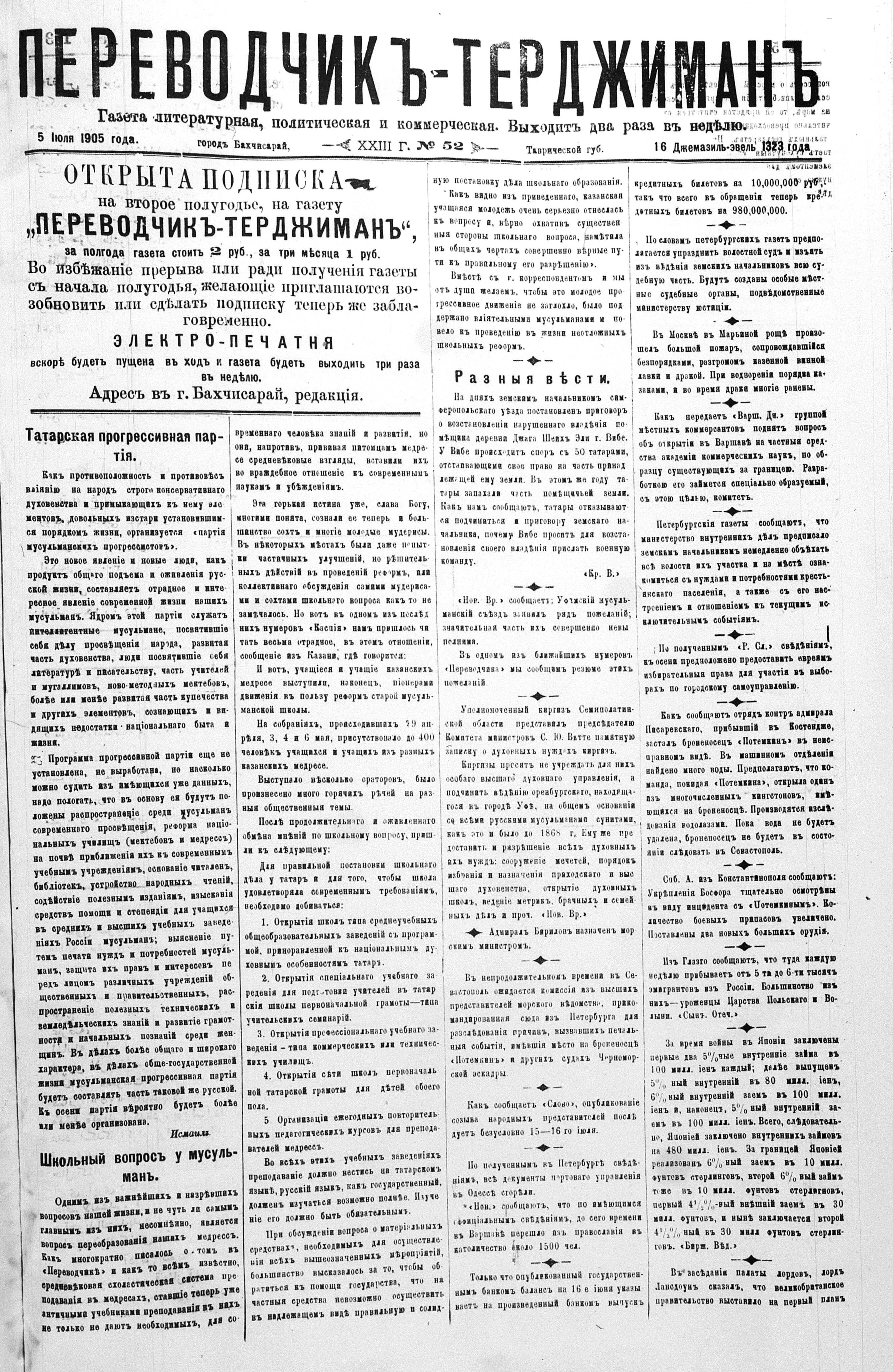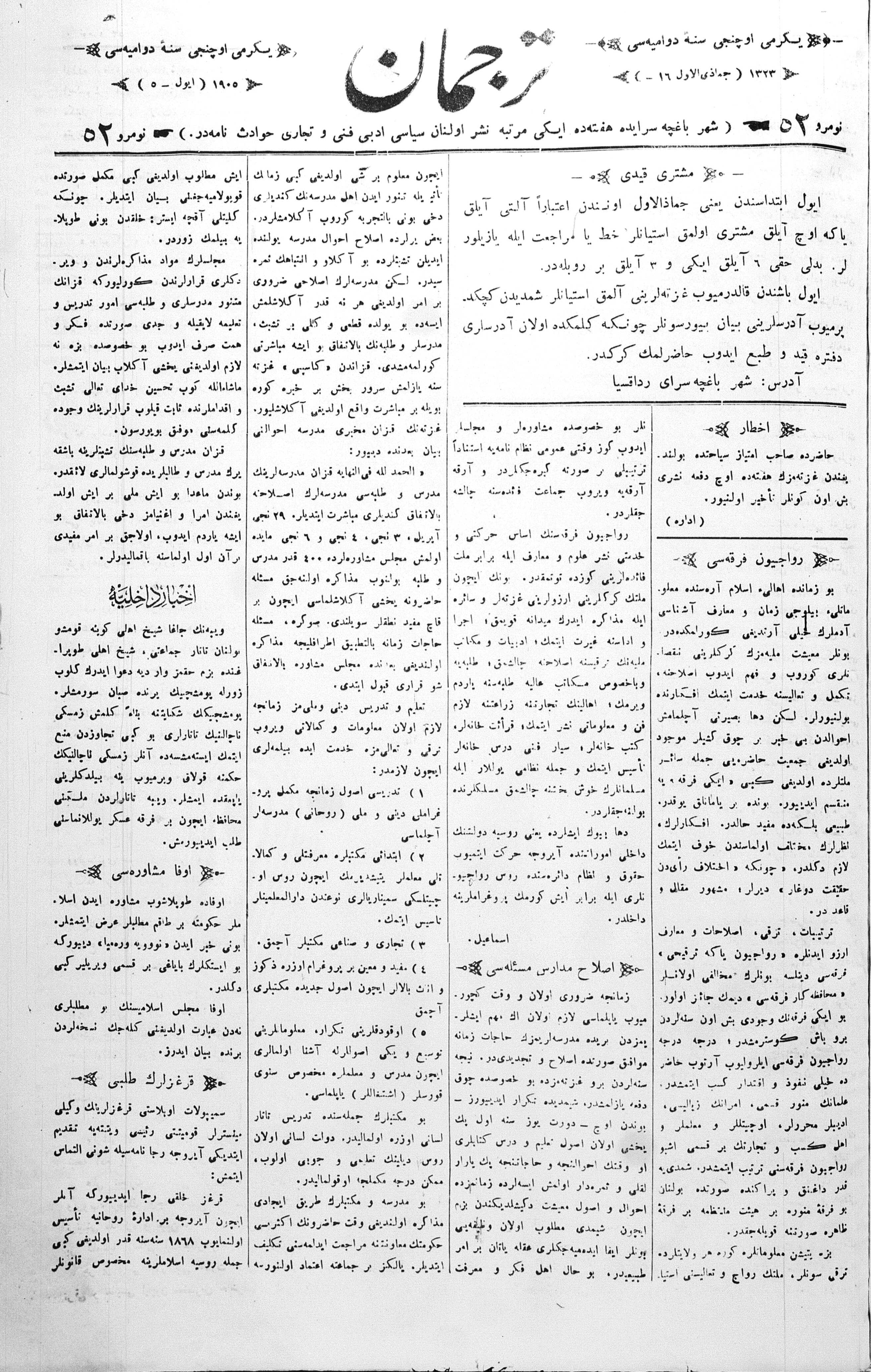 Tercüman, 05 July 1905 Year 23 No 52