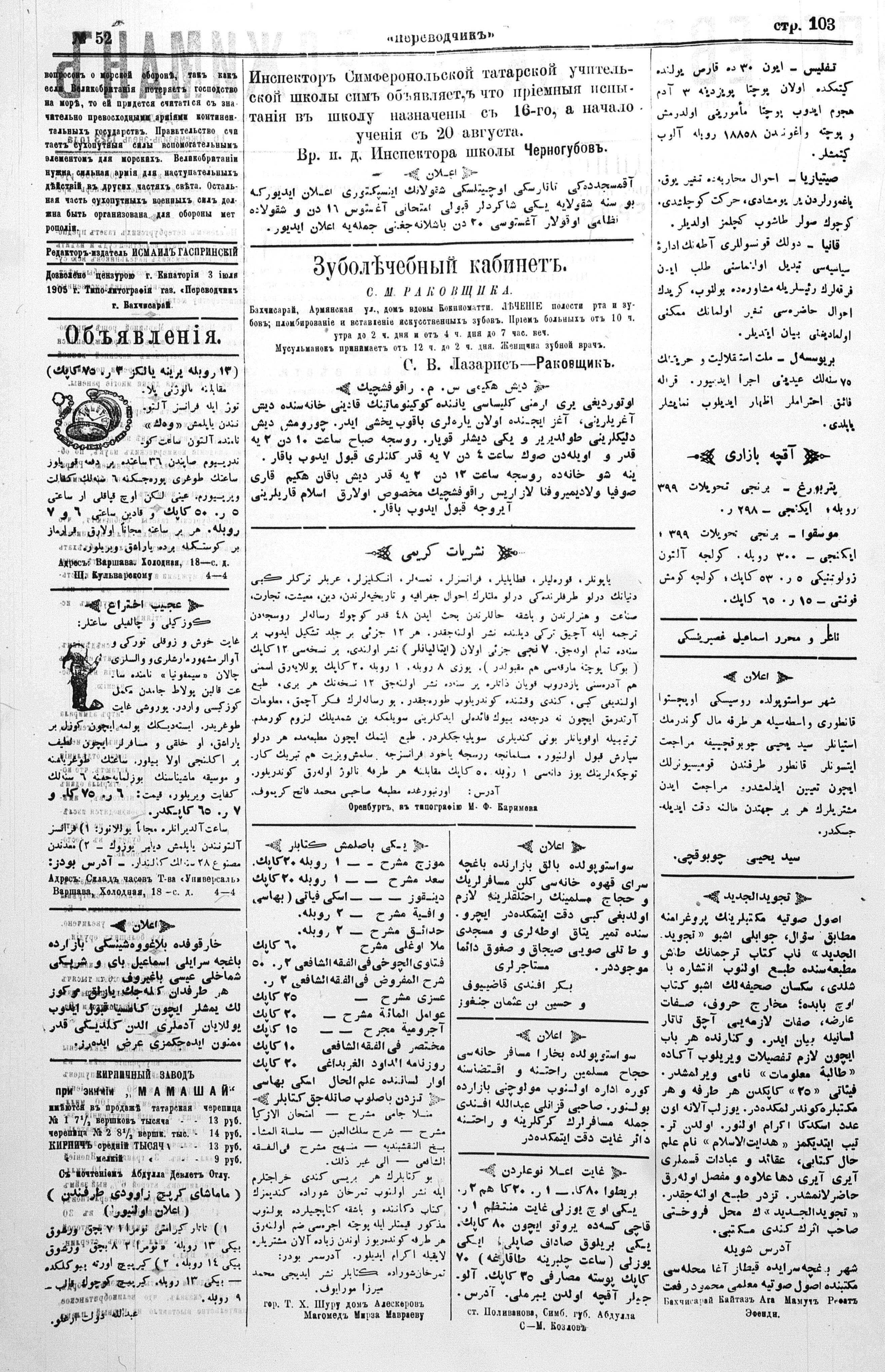 Turkish-Russian newspaper published in Crimea by İsmail Gaspıralı.