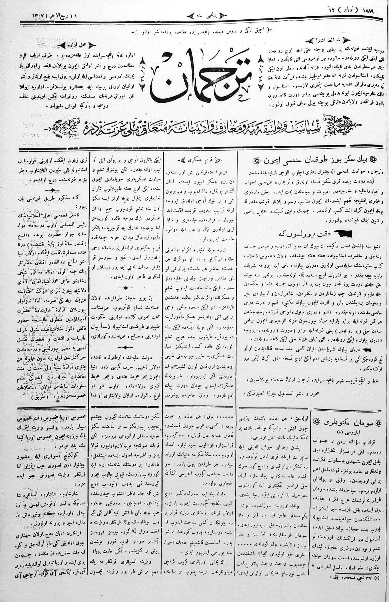 The name of the newspaper changed to Tercüman-ı Ahval-i Zaman in 1905. In 1909, it started to be published under its first name, Tercüman.